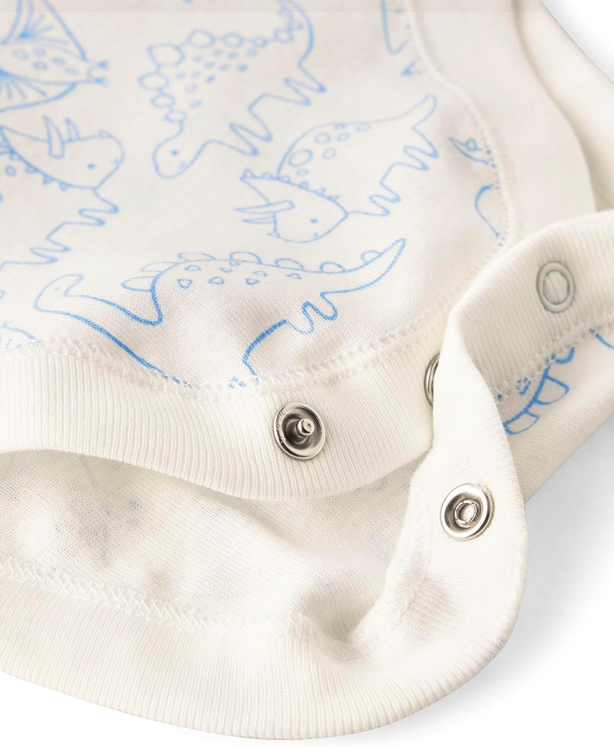 • MULTIPACK — includes short sleeve bodysuit with allover stripes, short sleeve solid bodysuit and short sleeve bodysuit with allover dino print