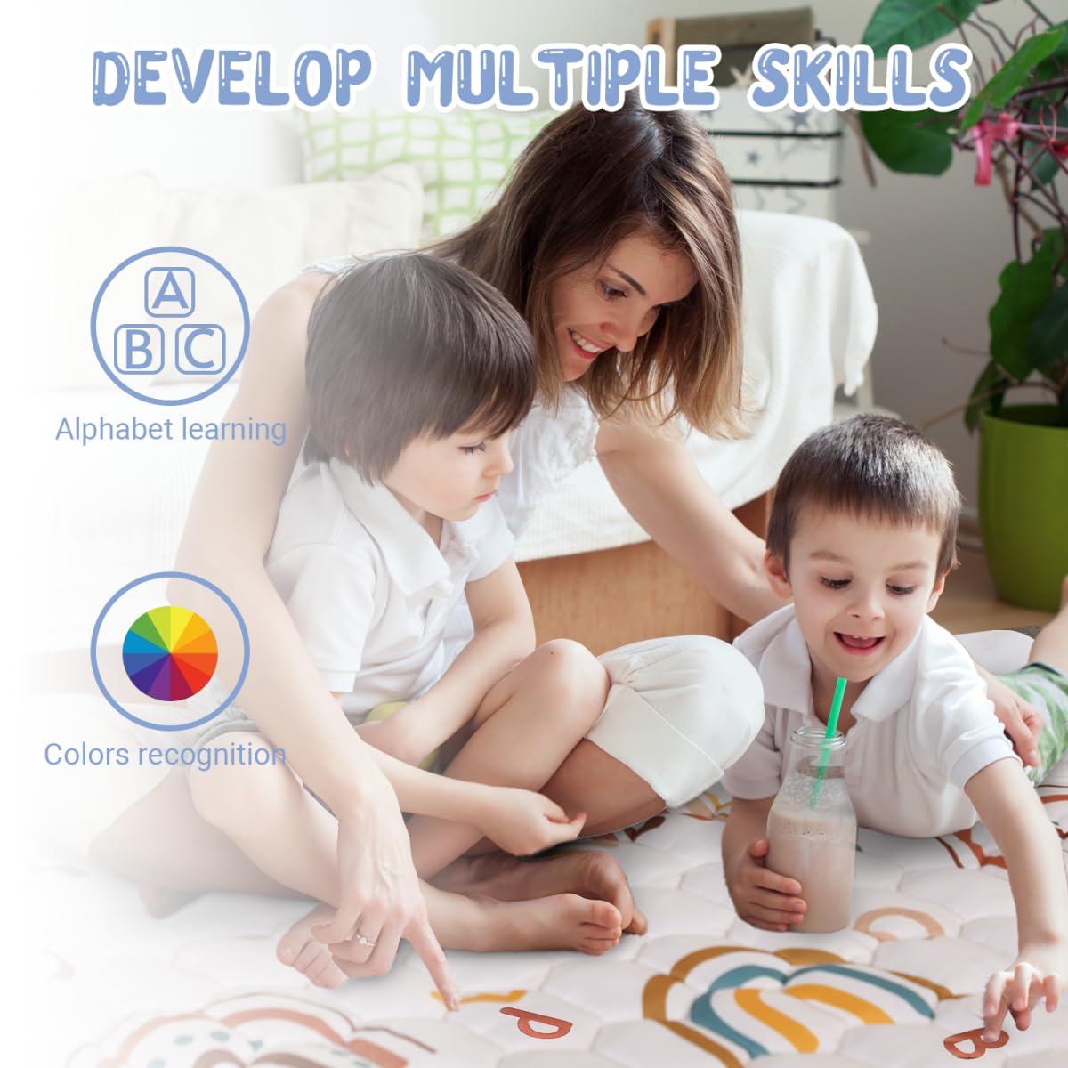 - 【Themed Design】The play mats for babies and toddlers designs with the boho rainbow pattern, matching 26 letters help improve children's cognitive skills, make childhood exploration more interesting. you can use it in all sorts of infant activities, such as tummy time, crawling, learning to walk, playing and sleeping.