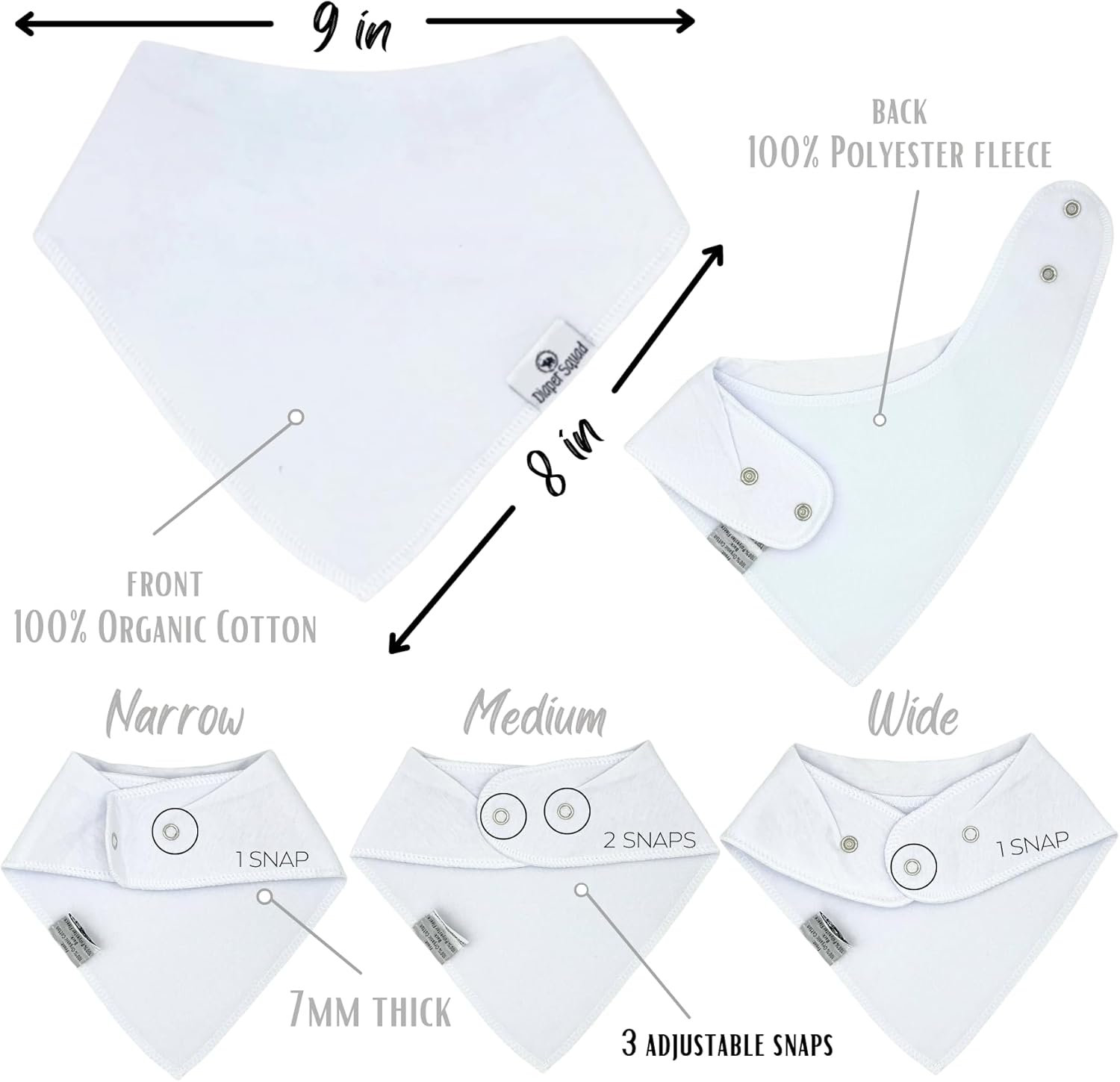 - 10-Pack Baby Bibs - Diaper Squad Bibs come in many designs, each pack offers gender neutral options to easily match your baby’s daily outfit. The soft and breathable fabric of these absorbent baby bibs ensure your little one stays cool while still catching drool while teething, they are great as baby spit up bibs, which makes them newborn essentials must haves.