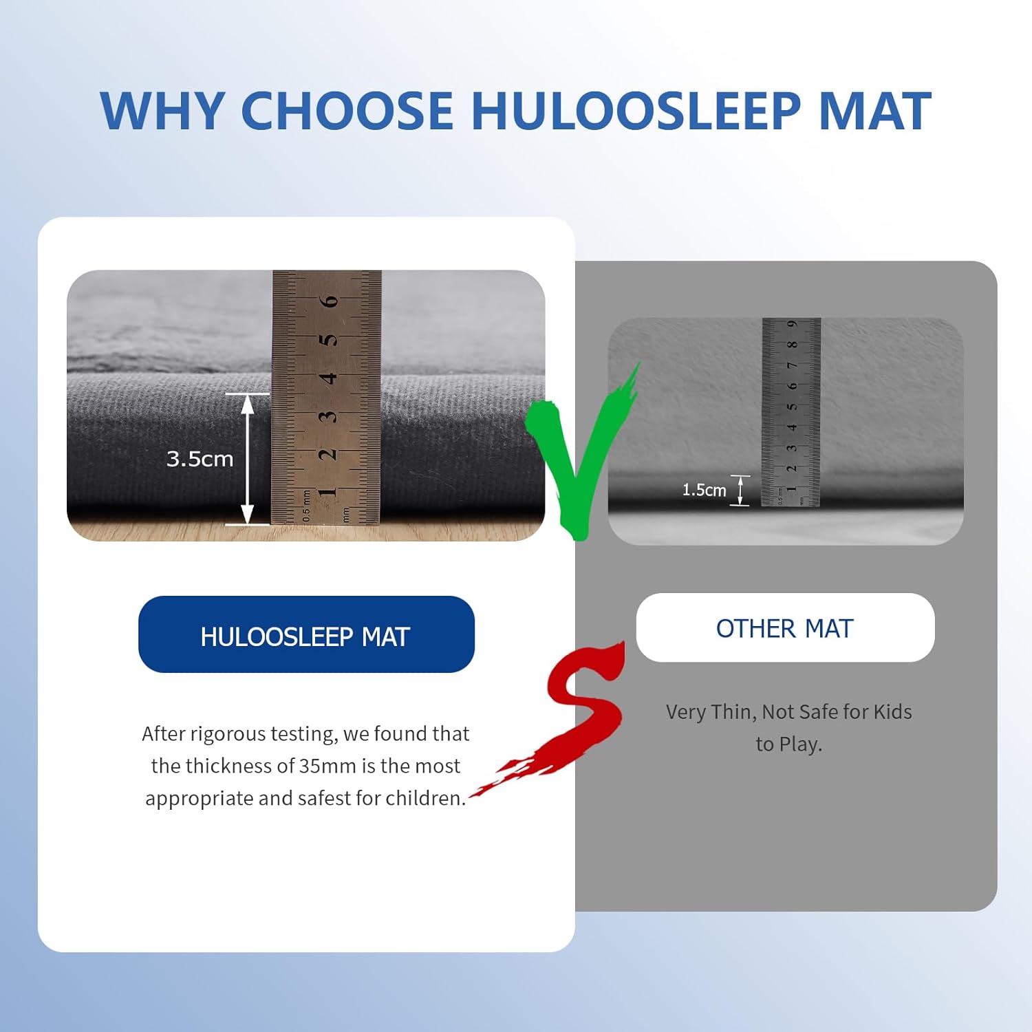 - ăFITS TO MULTIPLE OCCASIONă:It can be used as a yoga mat for exercise, a tatami rug for a traditional Japanese style, and is compatible with floor heating. It provides a comfortable spot for adults to relax and watch TV, as well as a pet-friendly cushion for your furry friends to sleep on. The design helps absorb sound, reducing noise in busy homes. With a thickness of 35mm, this kids' play mat ensures your bedroom or living room is an incredibly comfortable personal space. Unlike most baby play mats made of solid plastic that clash with home decor, the HulooSleep Crawling Mat elegantly addresses this issue