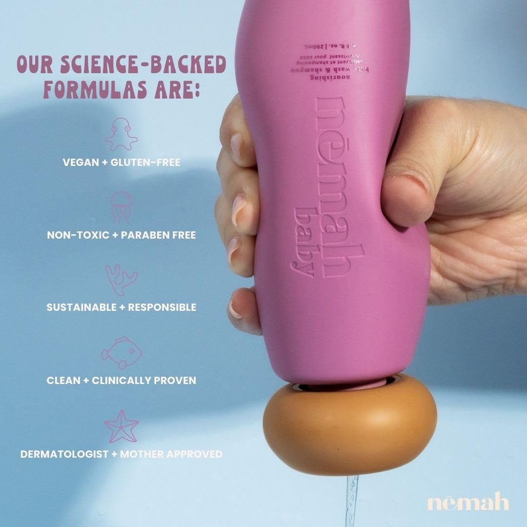 Nemah - 2-in-1 Baby Soap and Shampoo - Tear-Free Baby Body Wash and Shampoo with Actismart Chamomile, Jojoba Oil, & Activera Aloe - Vegan & Cruelty-Free - 9.8 fl. oz.