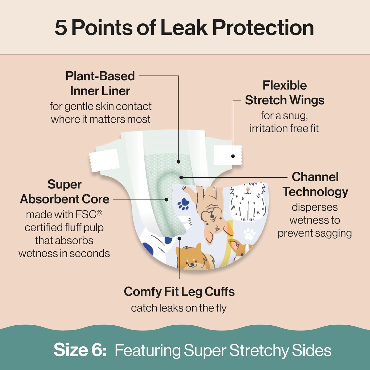 - OUR BEST FIT YET: Designed to move with your baby, Honest Clean Conscious Diapers feature comfy fit leg cuffs to catch leaks on the fly and flexible, stretchy wings that provide a snug, irritation-free fit. The super cute prints are an added bonus