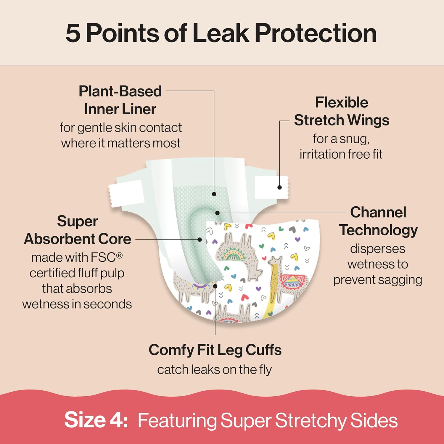 - OUR BEST FIT YET: Designed to move with your baby, Honest Clean Conscious Diapers feature comfy fit leg cuffs to catch leaks on the fly and flexible, stretchy wings that provide a snug, irritation-free fit. The super cute prints are an added bonus