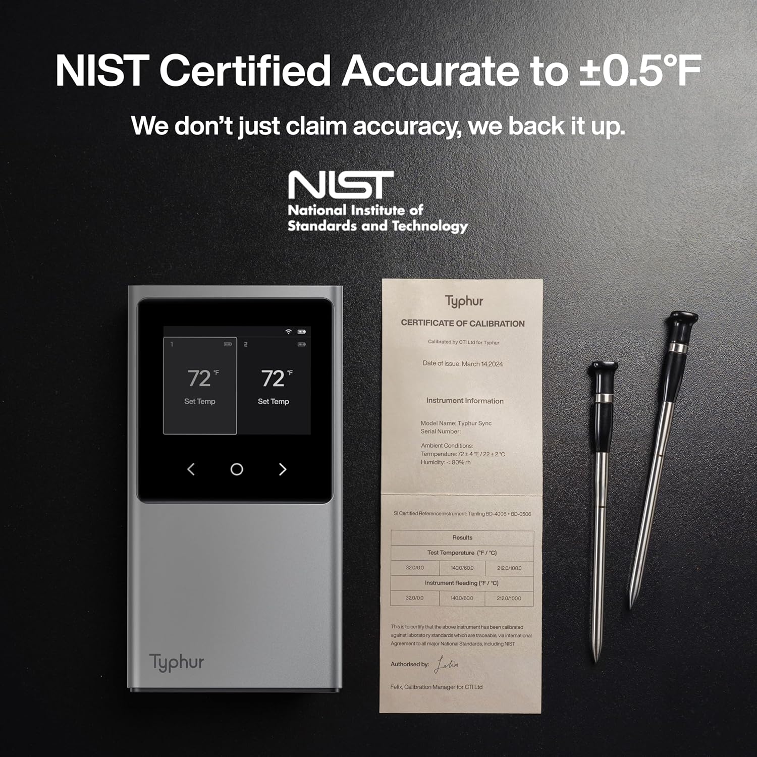 - 6 Sensors: With 5 optimally placed internal sensors and an ambient sensor on the tip, the Typhur Sync wireless meat thermometer can accurately measure doneness and even predict when your cook will be done with intelligent algorithm.
