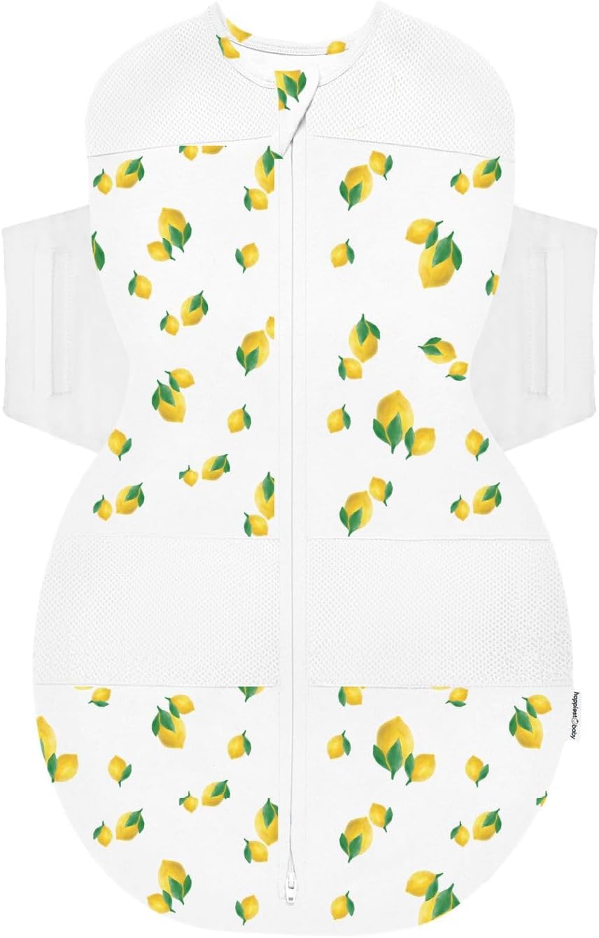 Happiest Baby SNOO Sleep Sack - 100% Organic Cotton Baby Swaddle Blanket - Doctor Designed Promotes Healthy Hip Development (Ivory Lemons, Medium)