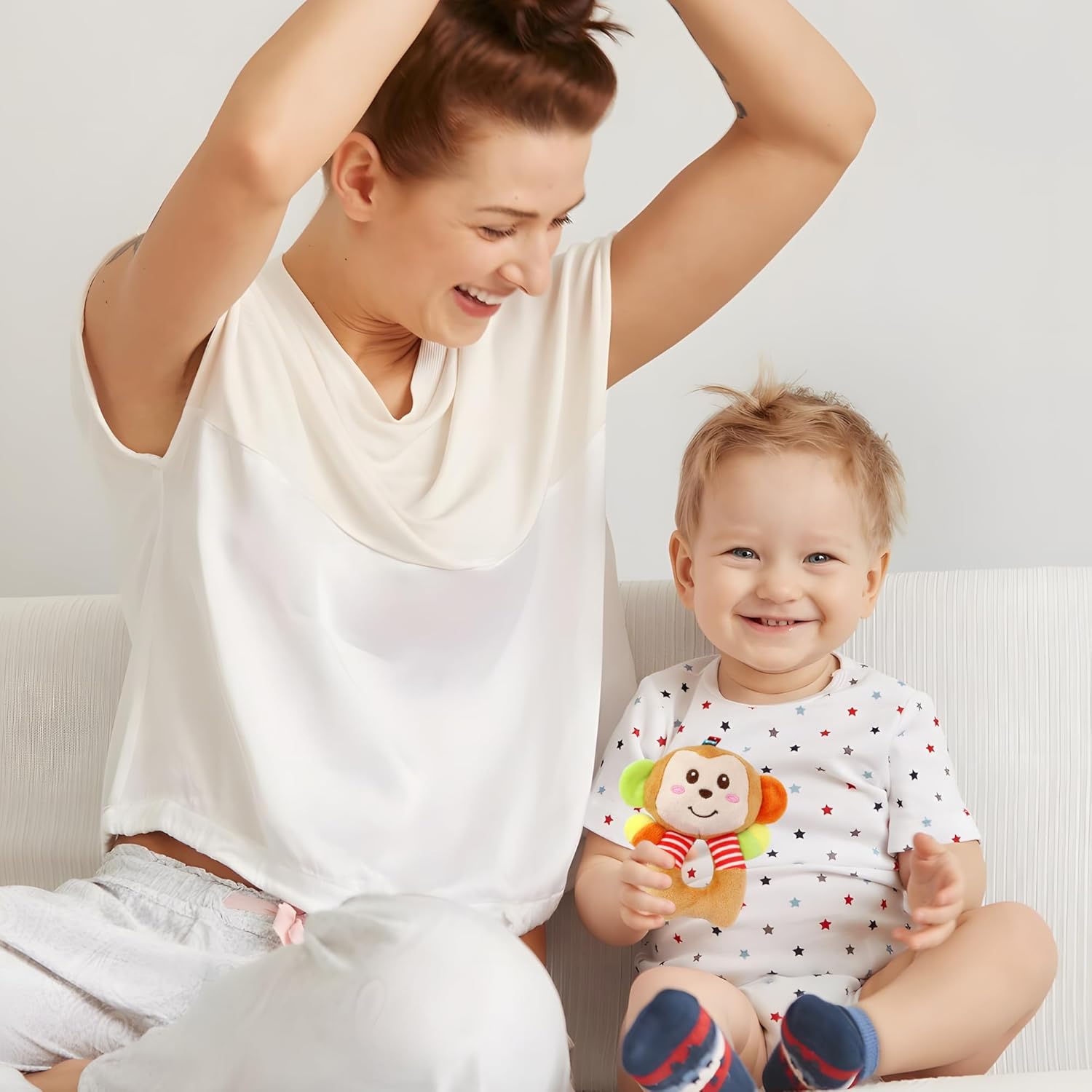 • 【Soft Rattle Toy】: This Plush Baby Rattle Toys are made from plush with soft PP cotton filling, and comfortable,recommend hand washing.