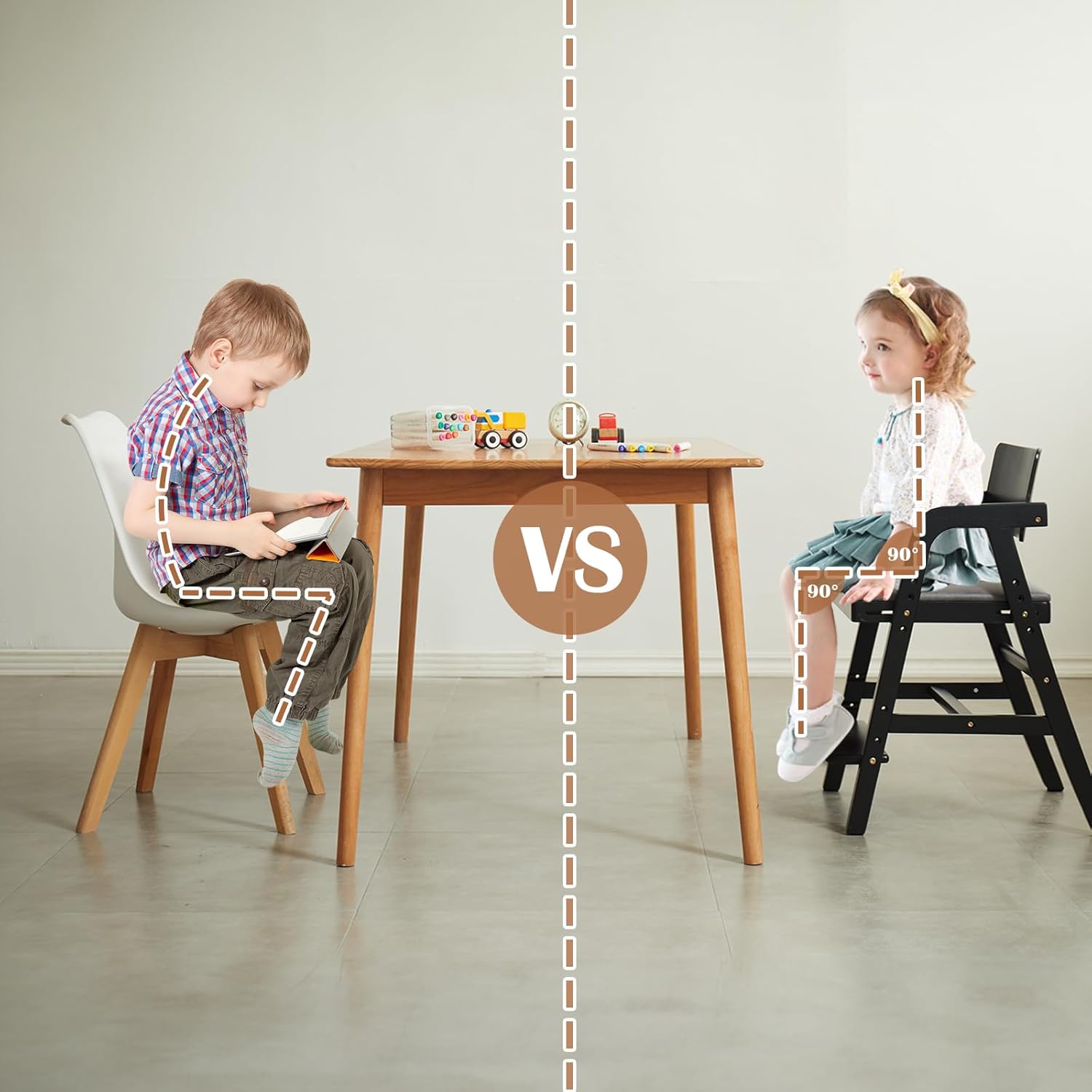 Solid Wood high Chairs for Toddlers,High Chair Grows with Kid for Dining, Study Chair for Children, Black