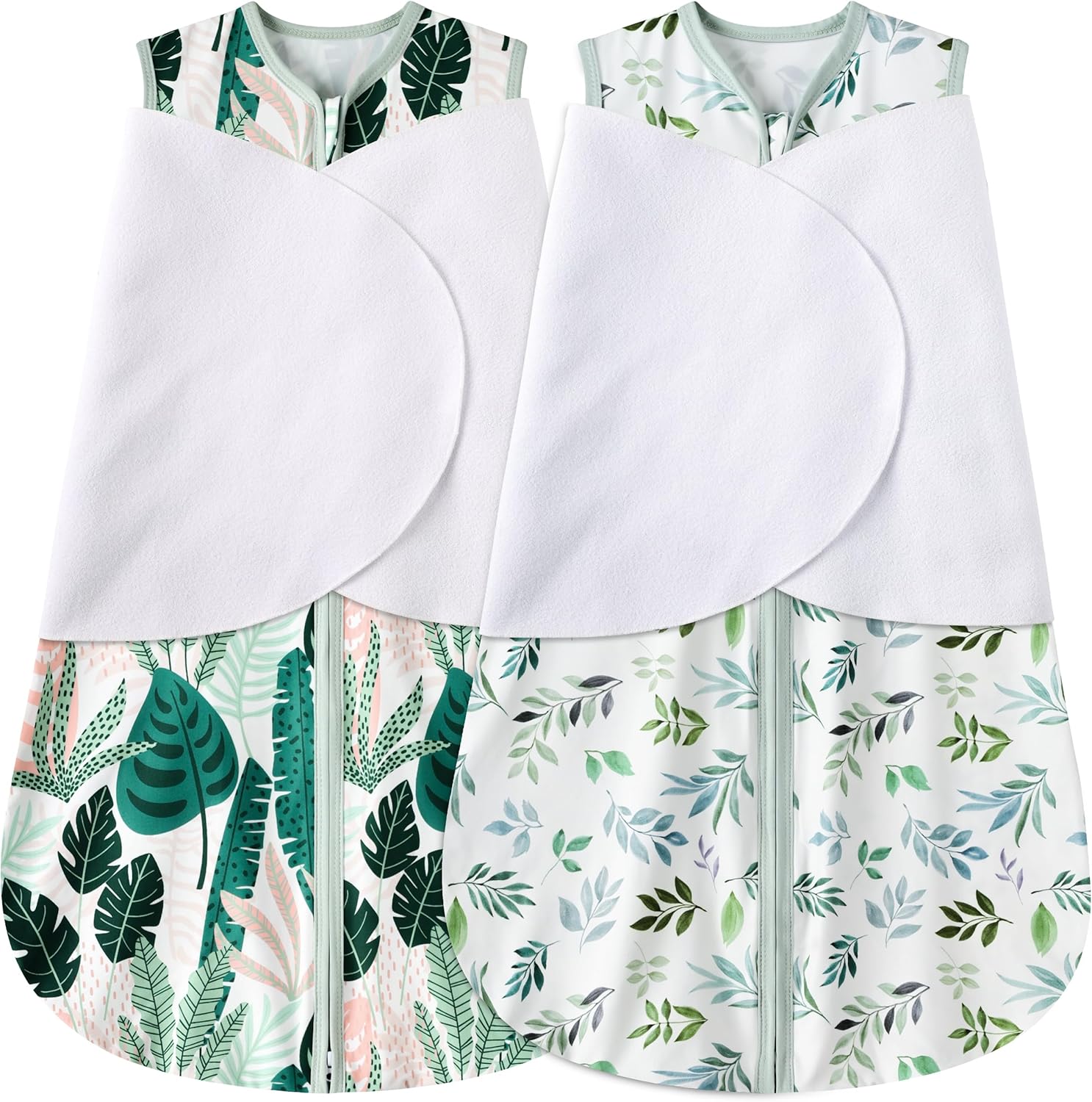 Newborn Sleep Sack Baby Swaddle,0-3 Months,3-Way Adjustable Wearable Blanket,100% Rayon Cotton Swaddling Sleeping Bag,TOG 0.5(Banana&Leaf)