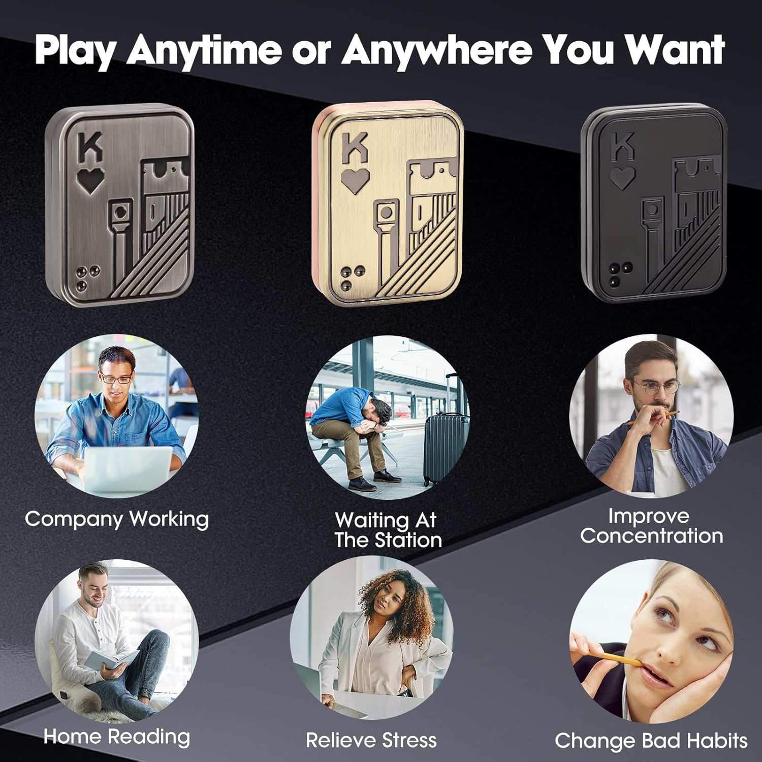 - 【POKER PUSH SLIDER】: The magnetic fidget toy utilizes internal magnets that simulate the unfolding process of playing cards when pushed in the direction of its position. The magnetic force provides force feedback and produces a crisp metallic clanking sound, adding to the satisfaction of using the fidget toys adults. The fidget toy can be used as a desktop accessory, you can play with it anywhere.【Gentle Reminder】We recommend this toy for use when you are alone or in noisy public places, as the metallic sounds made may cause uncomfortable to others!
