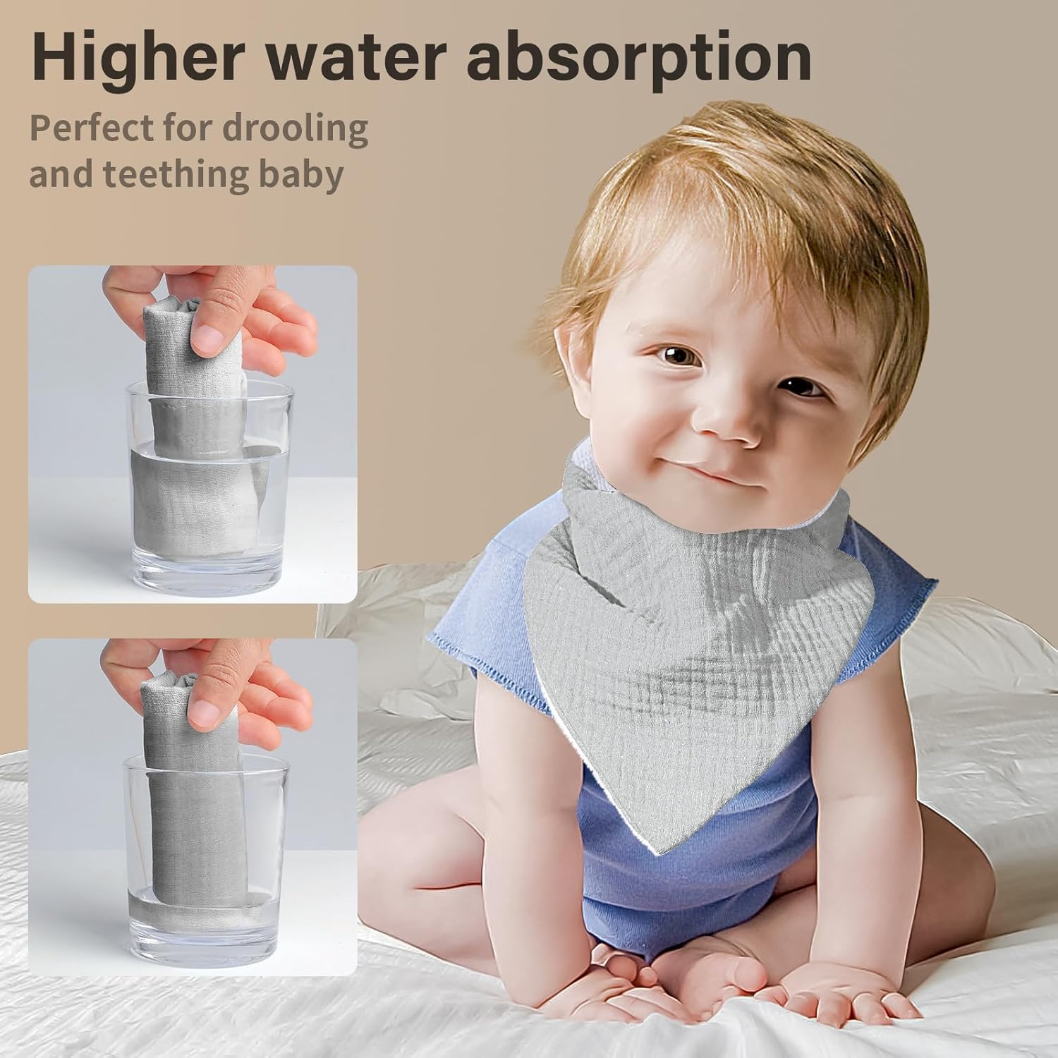 - 【Soft & Cozy】: The Nisxabebe bandana bibs are crafted from muslin,known for its incredible softness.Thanks to muslin's superb breathability, babies will feel incredibly comfortable while wearing it. The soft plush backing boosts the bib's absorbency.