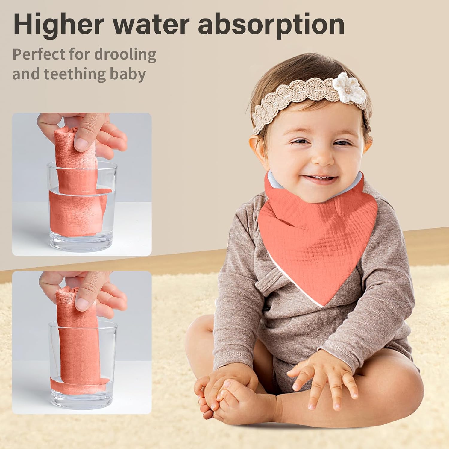 - 【Soft & Cozy】: The Nisxabebe bandana bibs front are crafted from muslin,known for its incredible softness.Thanks to muslin's superb breathability, babies will feel incredibly comfortable while wearing it. The soft fluffy plush backing boosts the bib's absorbency.