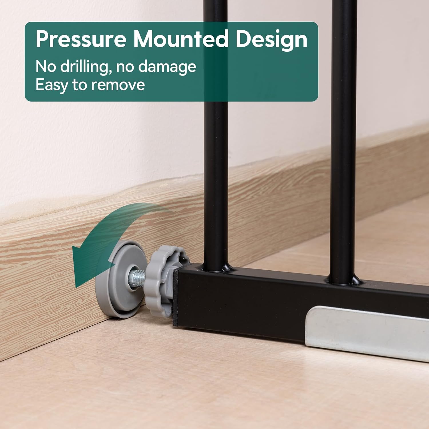 Babelio Baby Gate, 29-43" Auto-Close Easy Install Pet Gate, Extra Wide Walk Thru Child Safety Gate, 30" Tall Pressure-Mounted Metal Dog Gate for Doorways & Stairs, Black