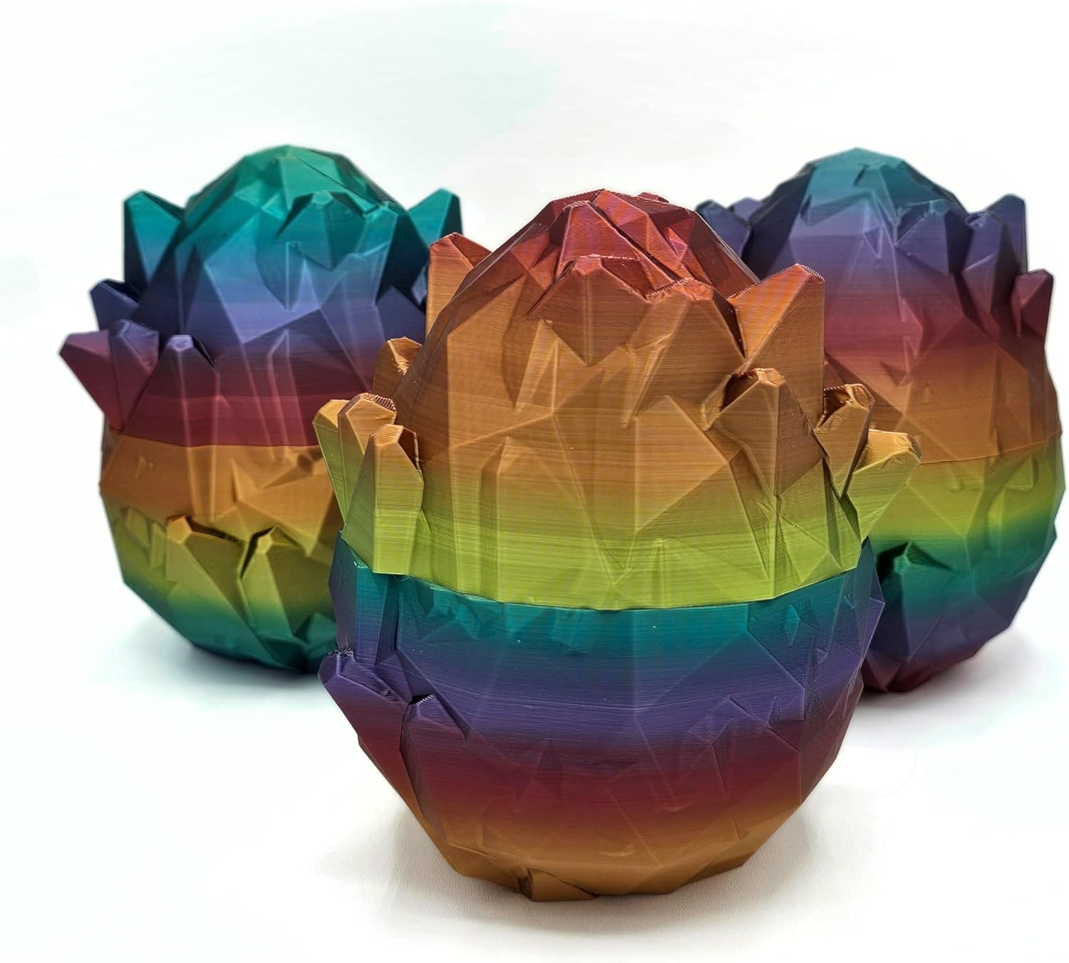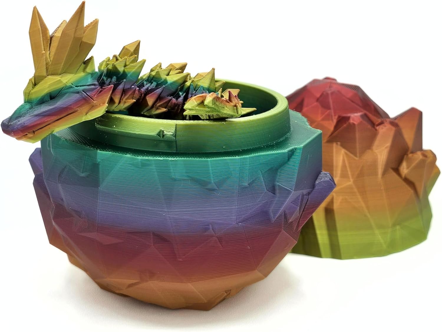 3D Printed 14'' Articulated Crystal Dragon with Egg, Toy Home Office Decor, Executive Desk Toy, Adult Fidget Toy, Toddler Play Game (Rainbow, Medium 14'' w/ Egg)