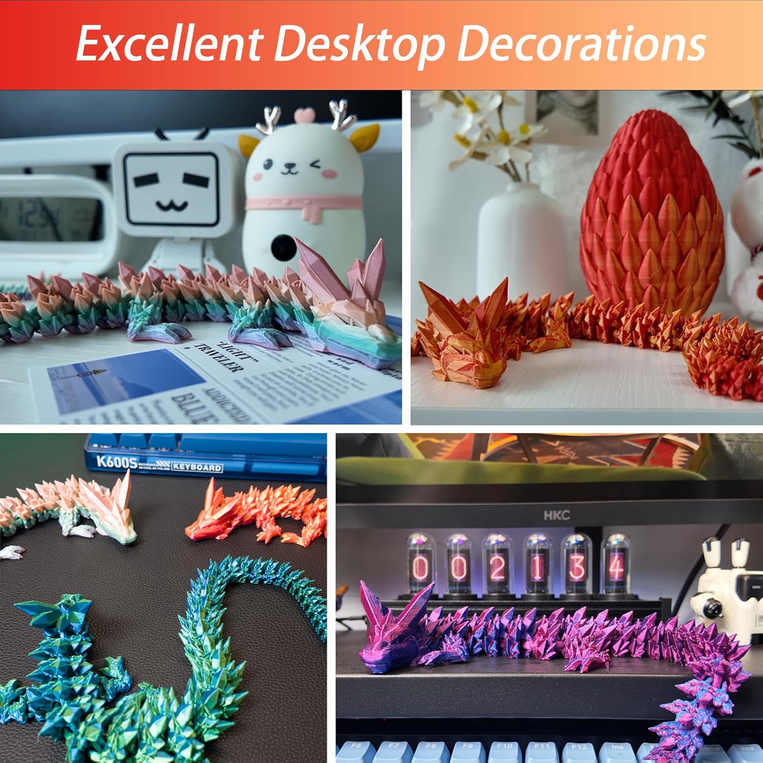 - 【Premium Quality Materials】: Made from high-quality materials, this dragon is durable and long-lasting. However, please note that due to the nature of 3D printing, the colors and patterns of the dragon may vary slightly from the product images.