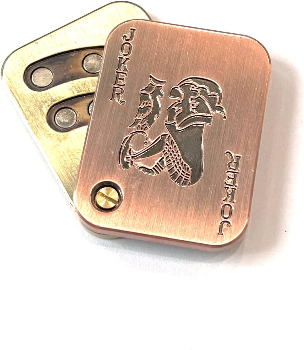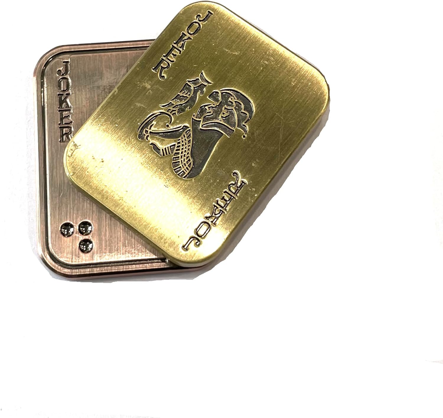 - Excellent Metal Work-The poker Fidget slider is entirely made of stainless steel. The front and back of the slider are beautifully engraved with black joker and red joker, respectively. The color of the metal is processed by the electroplating process, so the color of the upper metal body is copper, and the color of the lower metal body is brass. Every detail of the slider has been precisely machined, and the surface treatment is delicate and smooth, making it more comfortable to hold.