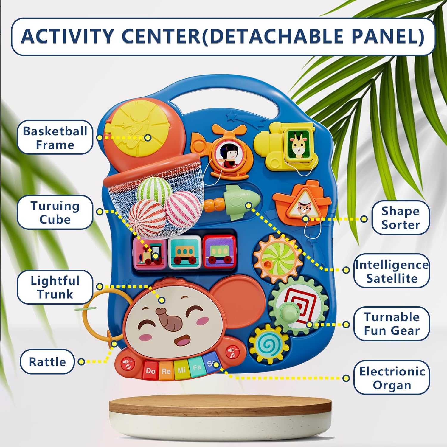 - [Detachable Entertainment Table]: This removable play panel features 3 shape recognition blocks, 3 colorful spinning rollers, 5 piano keys, 1 mobile phone toy, butterfly music button with 8 songs, this new design panel is very useful to help baby recognize colors and shapes, developing sense of rhythm, encouraging your baby’s creativity.