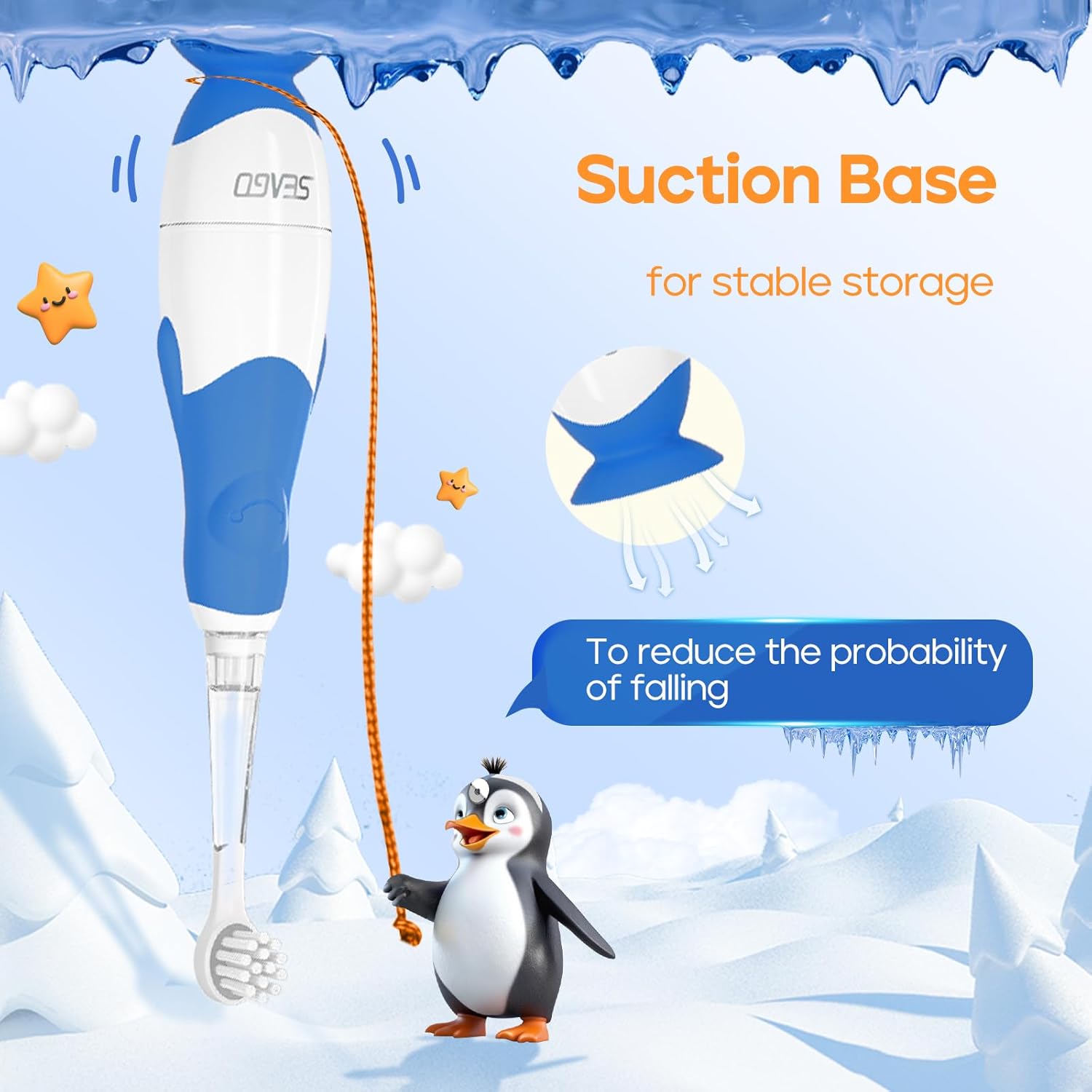 SEAGO Toddler Electric Toothbrushes for Baby Ages 0-3 Years, Baby Toothbrush with Smart Timer and Suction Base, 4 Replacement Brush Heads SG-513 (Navy-C)
