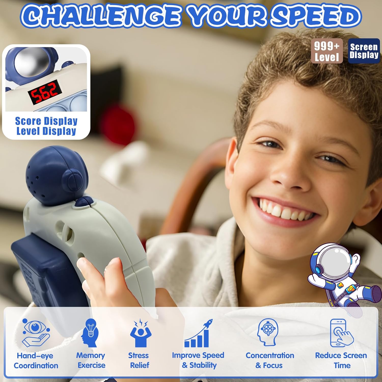 Upgraded Fast Push Game Popping Fidget Toys for Kids, Funny Toys with LED Screen for Kids 3-12, Birthday Gifts for Girls and Boys Bubble Stress,Handheld Puzzle Game Sensory Toys (Astronaut)