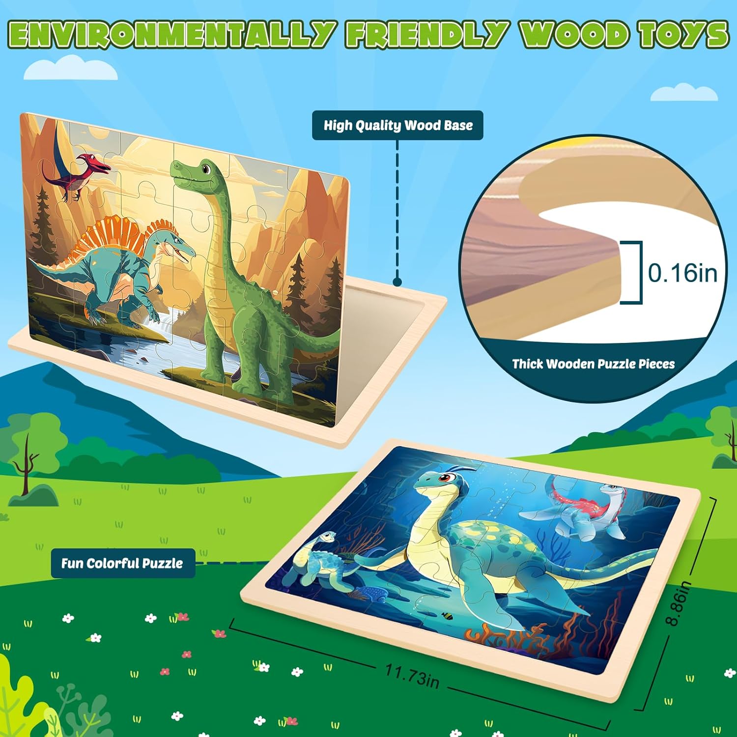 - Dinosaur Toddler Puzzles - 4 pack 24pcs wooden engineering vehicle jigsaw puzzles for kids ages 3-5 years old. The wooden toys include 4 Dinosaur puzzles. Easy, funny, wonderful- educational Shape Puzzles toys, develop hand-eye coordination, fine motor skills, and creative thinking.