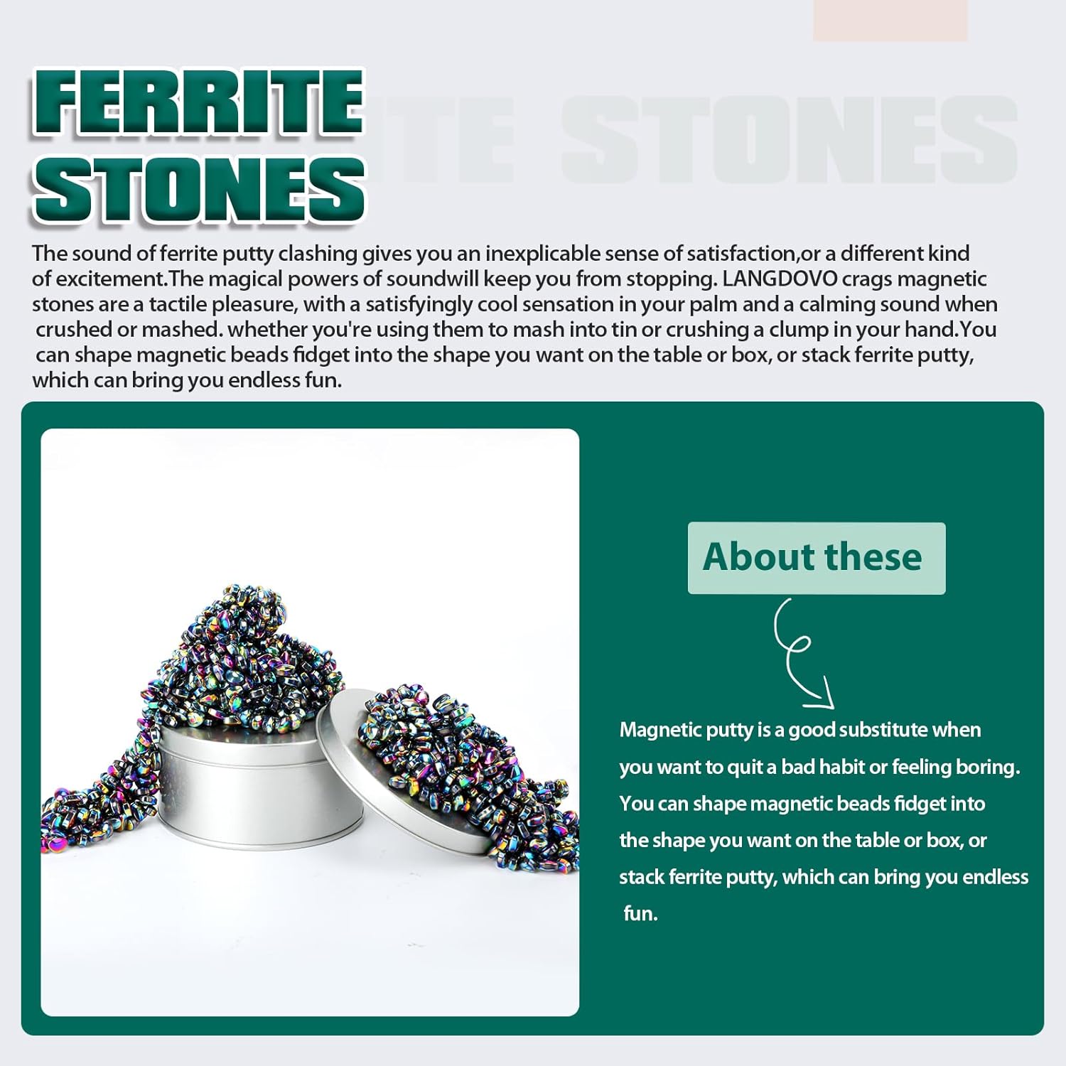 - 1.Enjoyable Desk Toy:LANGDOVO magnetic putty consists of mini weak magnets stones.Over 1000 magnetic beads fidget,fill your hand up with the Ferrite Putty.Mash them ,stack them,and feel pressure slip away as the stones slip past your fingers.Grab crags magnetic stones in the palm of your hand while you are dealing with the boring job.