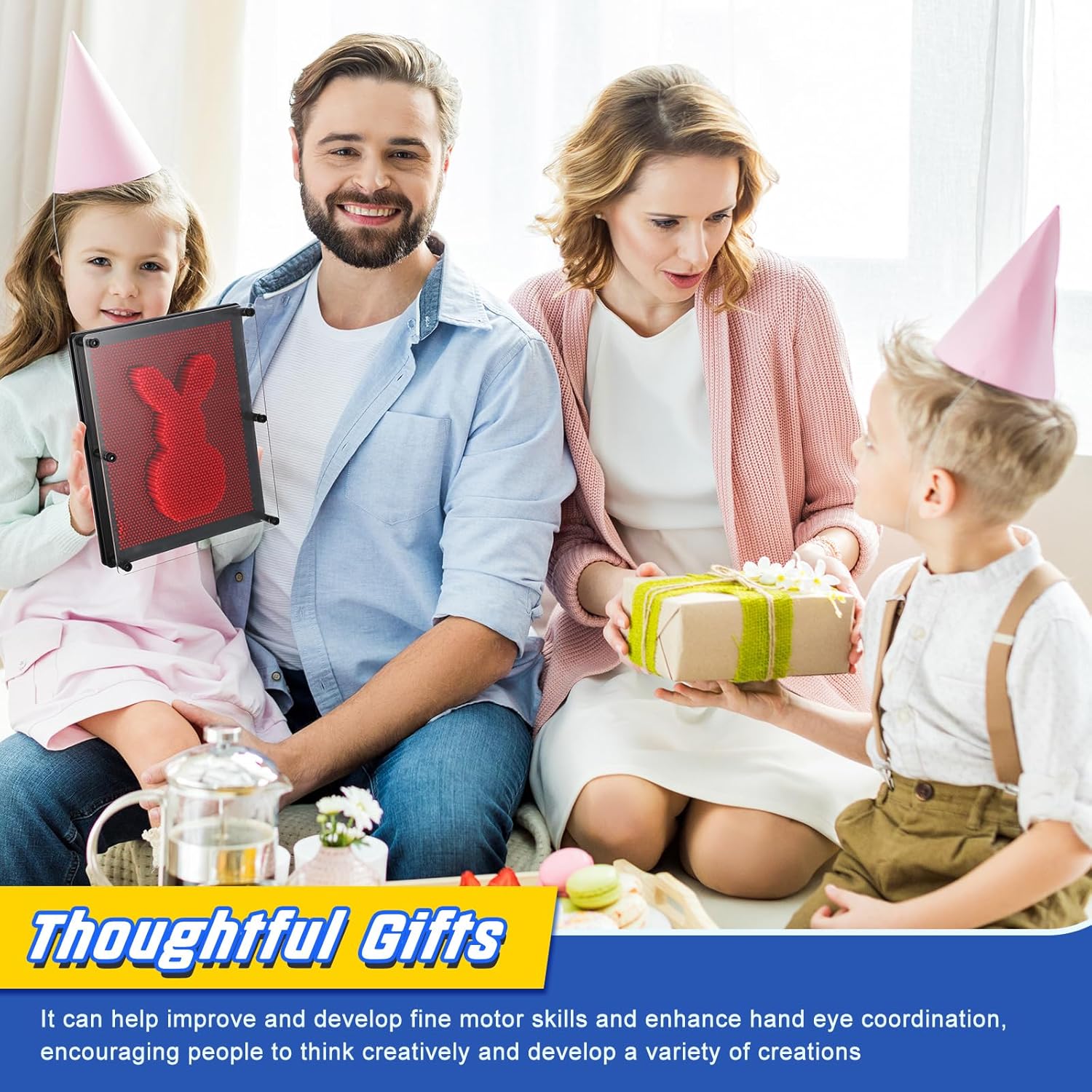 - Motor Skill Development: the act of creating detailed figures by using pin board toy requires precise manipulation, hence, using this toy can help improve and develop fine motor skills and enhance hand eye coordination, encouraging people to think creatively and develop a variety of creations