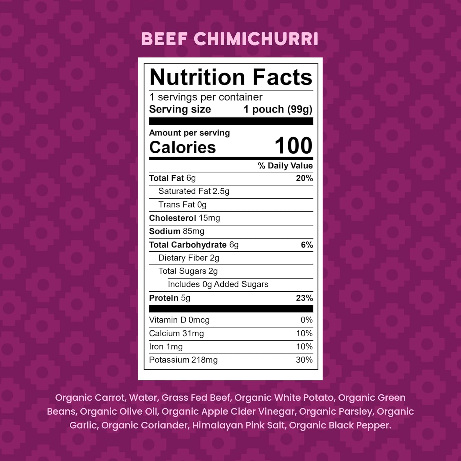 - NOURISHING ADVENTURE: Let your little foodie-in-training explore bold flavors with Serenity Kids' beef chimichurri baby food pouch. Packed with nutrient-dense organic beef and veggies, it's the perfect baby food puree for adventurous taste buds