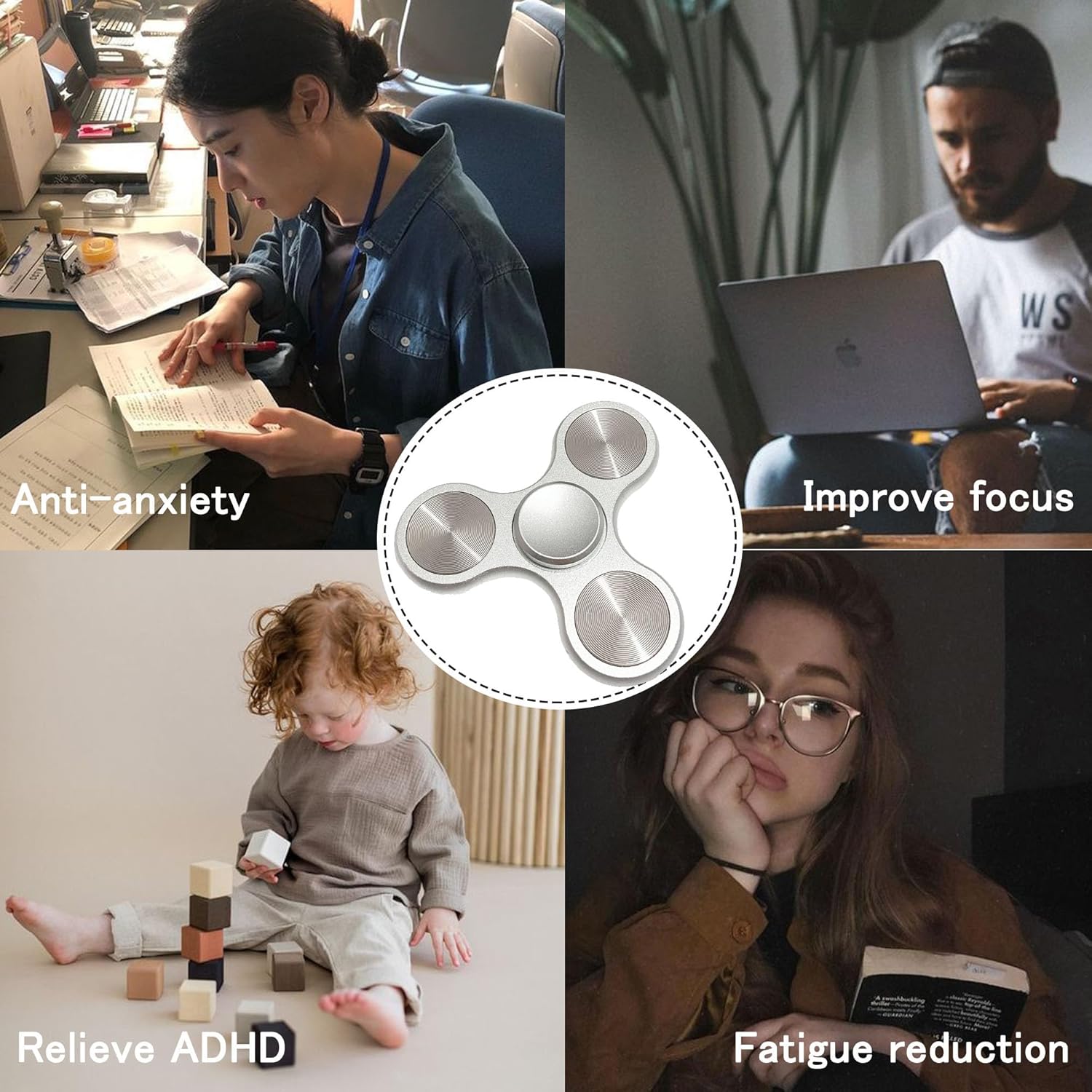 Fidget Spinners Toy Ultra Durable Stainless Steel Bearings High Speed 3-6 Min Spins Metal Material Hand Spinner ADHD Focus Anxiety Toys Stress Relief Reducer Fidget Spinner for Kids Adults Silver