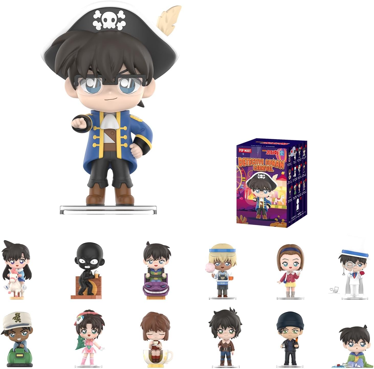 - POP MART Case Closed Carnival Series Figures: Blind box toys are collectibles that come in a sealed box, with the content unknown to buyers until they open it. This collection contains 12 regular figures, and 1 hidden edition (Culprit - Sneaking).