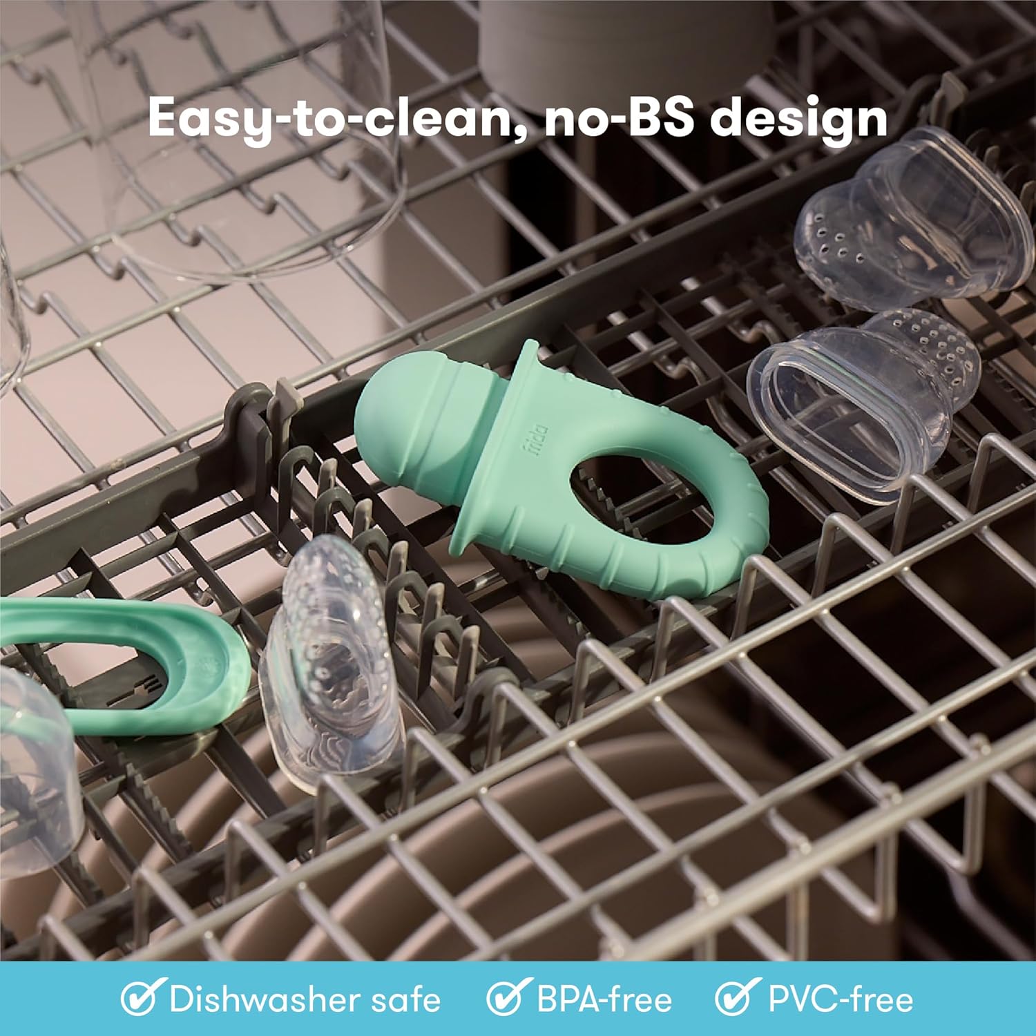 - FOOD INTRODUCTION: Fill the silicone feeder with fresh or frozen fruits, vegetables, yogurt, purees, breastmilk, or ice cubes. It's the perfect fruit feeder for babies.