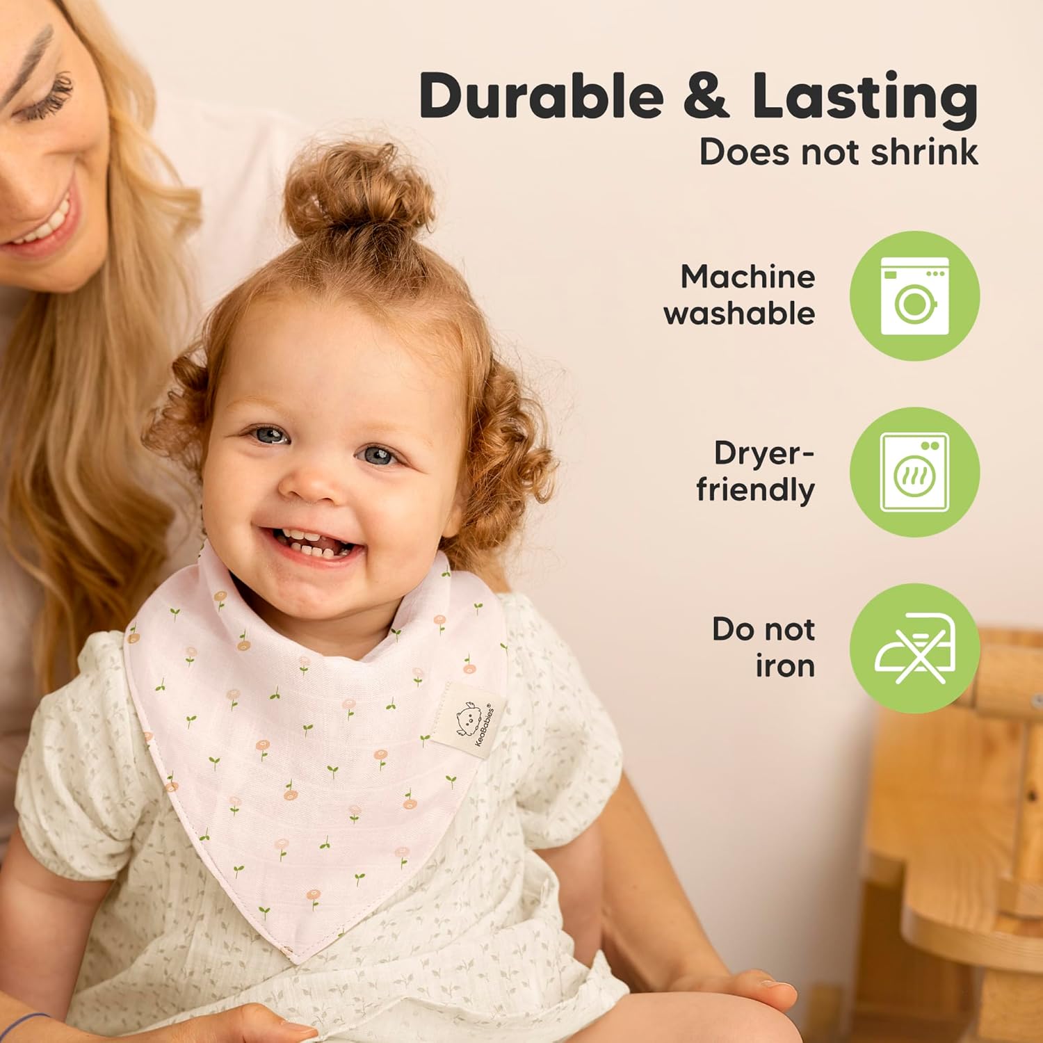 - Ultra-Soft & Breathable - The Lumi Muslin Bandana Bibs are cool to the touch, gentle on all skin types, and highly breathable. These baby drool bibs prevent heat rash and discomfort, making them ideal for teething and drooling infants and toddlers.