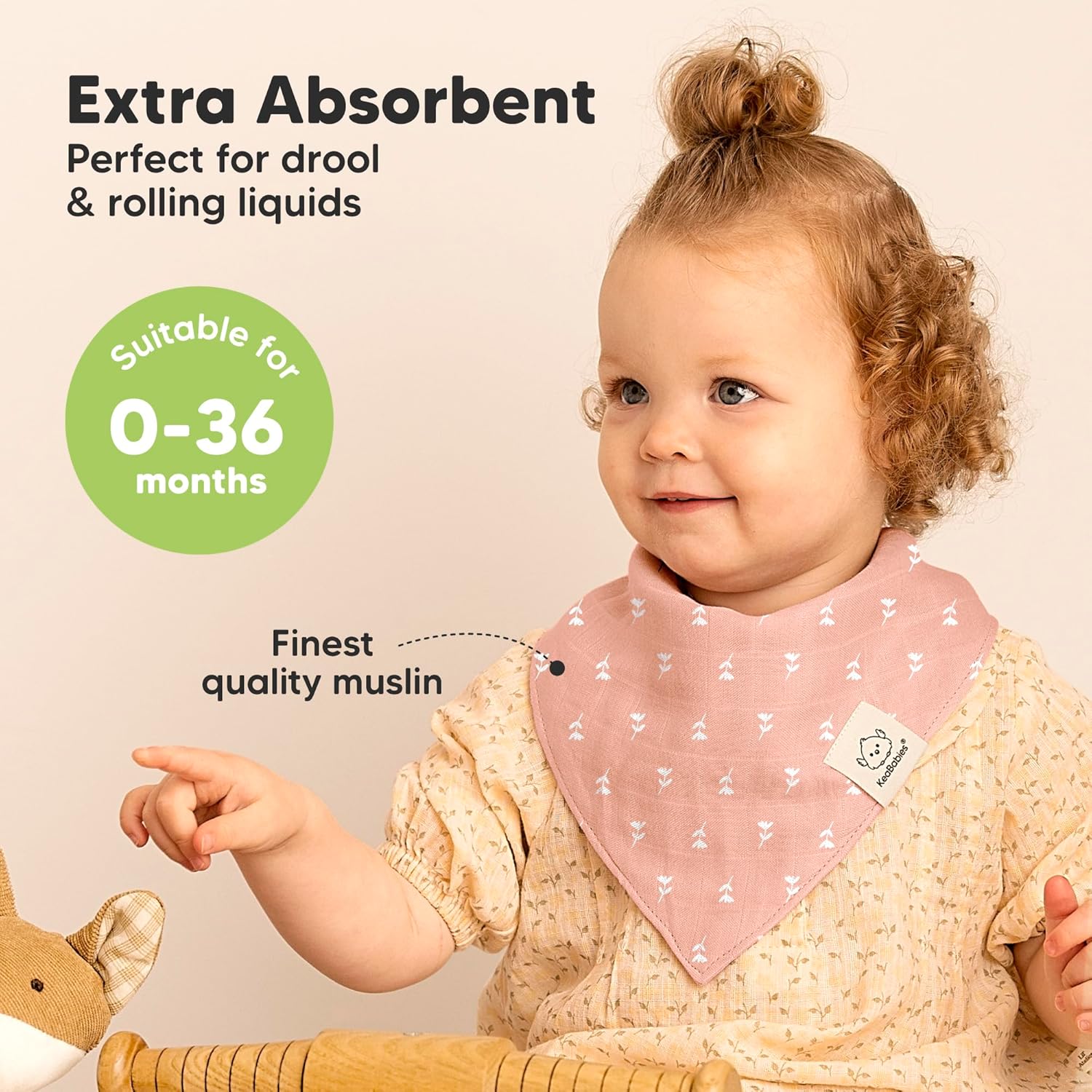 8-Pack Muslin Baby Bibs for Boys, Girls - Muslin Bandana Drool Bibs for Baby Girl & Boy, Drooling Newborn, Teething Toddler, Infant 0-36 Months, 100% Cotton Extra Absorbent & Soft(Wild Bloom)