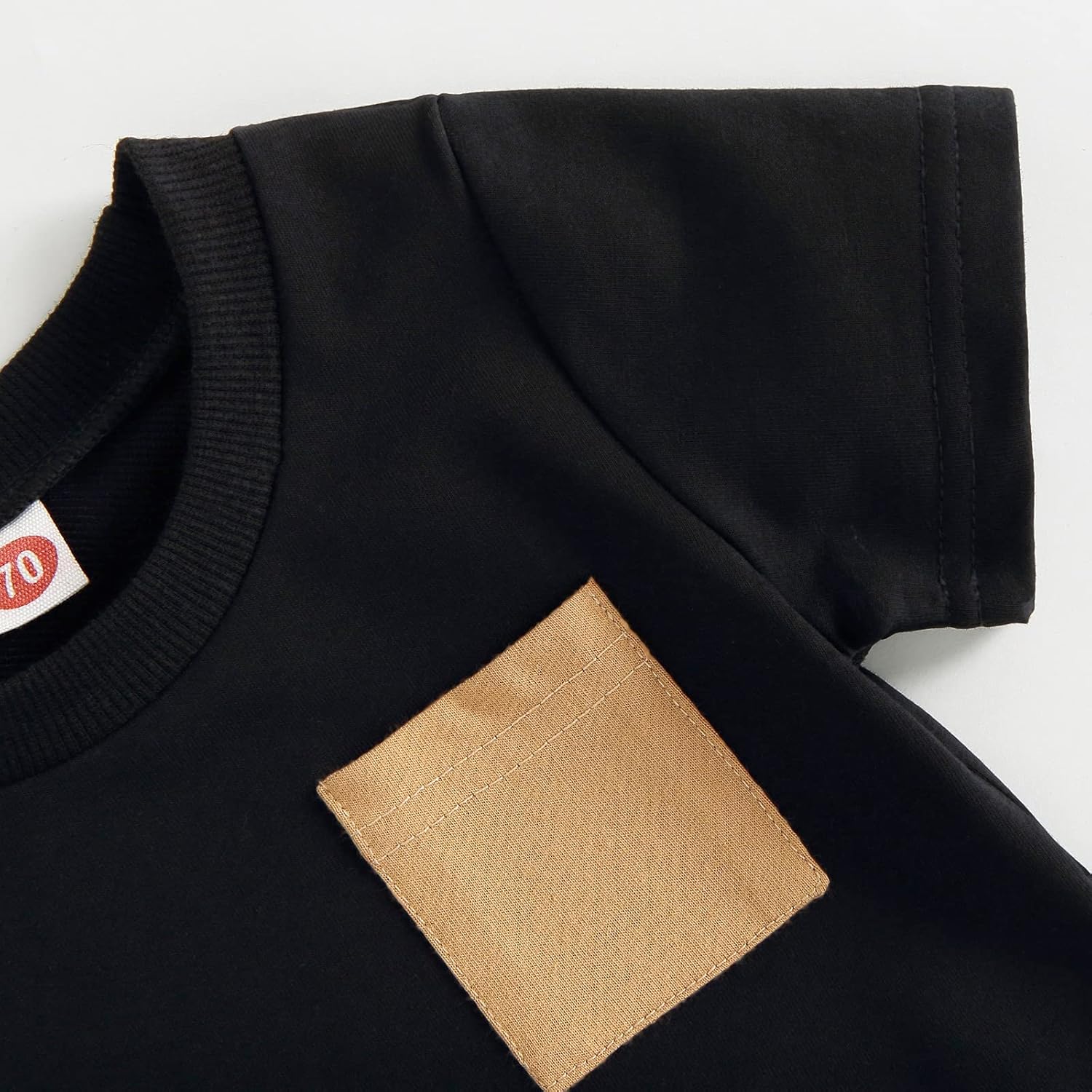fhutpw Baby Toddler Boy Clothes Summer Outfits 6 12 18 24 Months Patchwork Short Sleeve T Shirt & Shorts Sets with Pockets