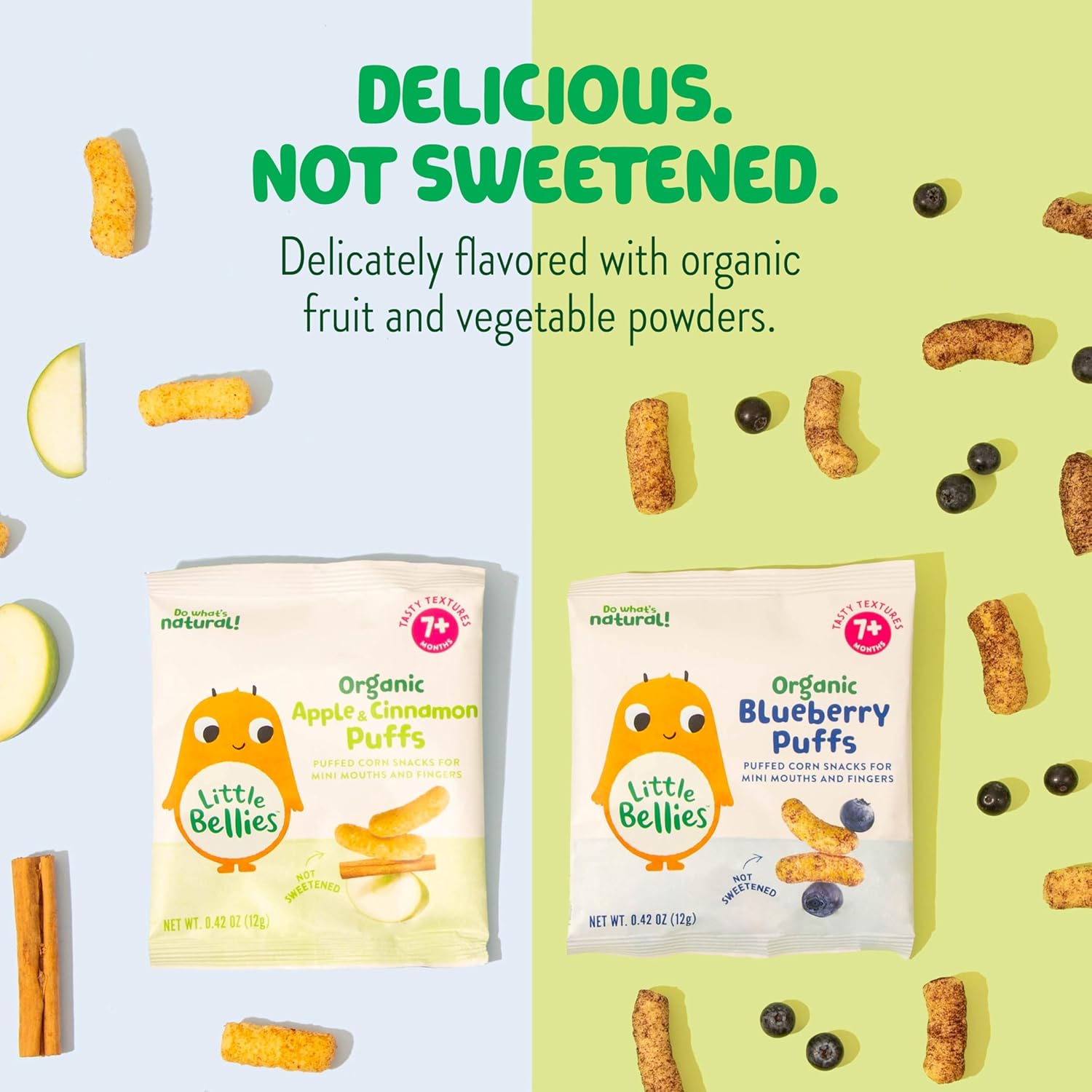Little Bellies Organic Puffs Variety Pack, Blueberry & Apple and Cinnamon (Pack of 18)