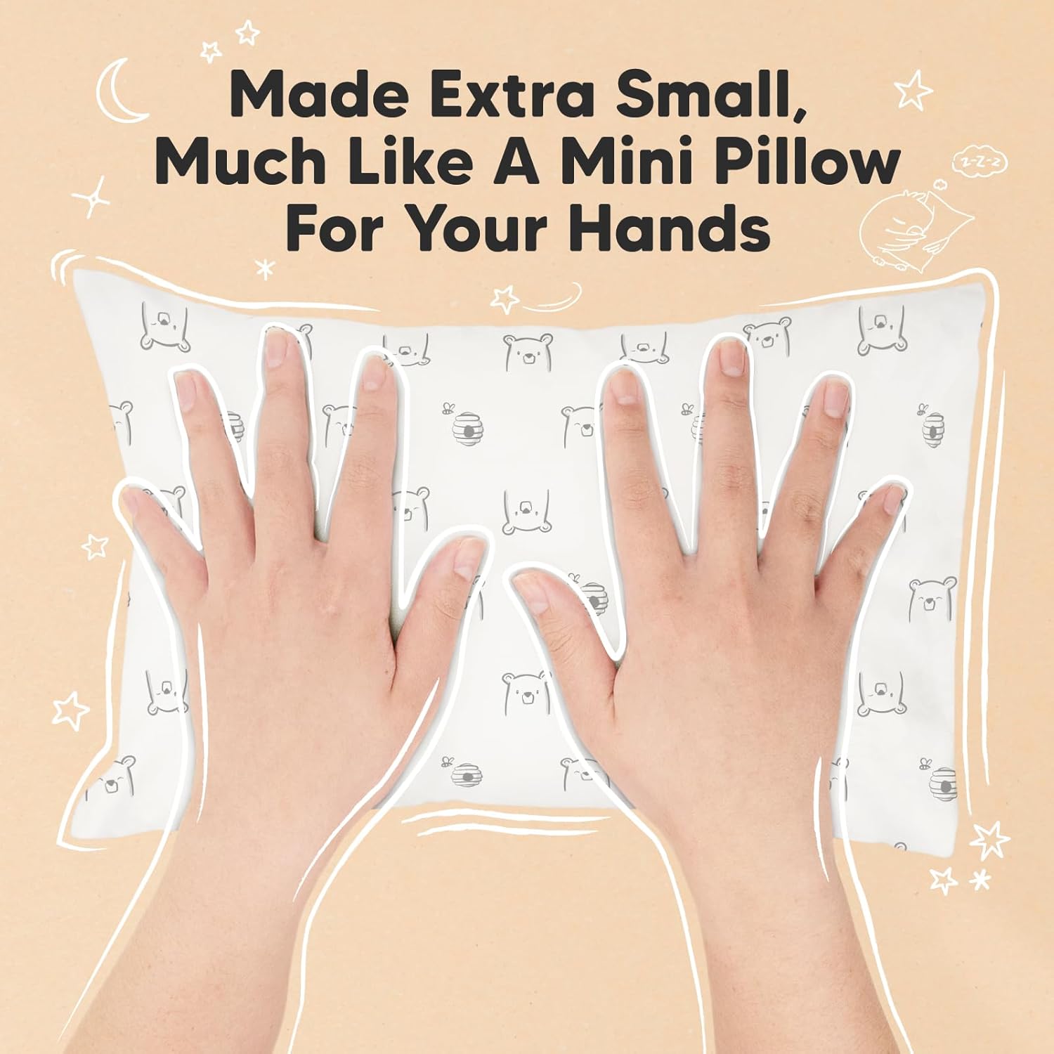 Mini Toddler Pillow with Pillowcase - 9x13 My Little Dreamy Travel Kids Pillow for Sleeping, Toddler Bed, Small, Tiny, Organic Cotton Pillowcase, Soft & Breathable, Kids 2-4 Years Old(Bumble Bear)