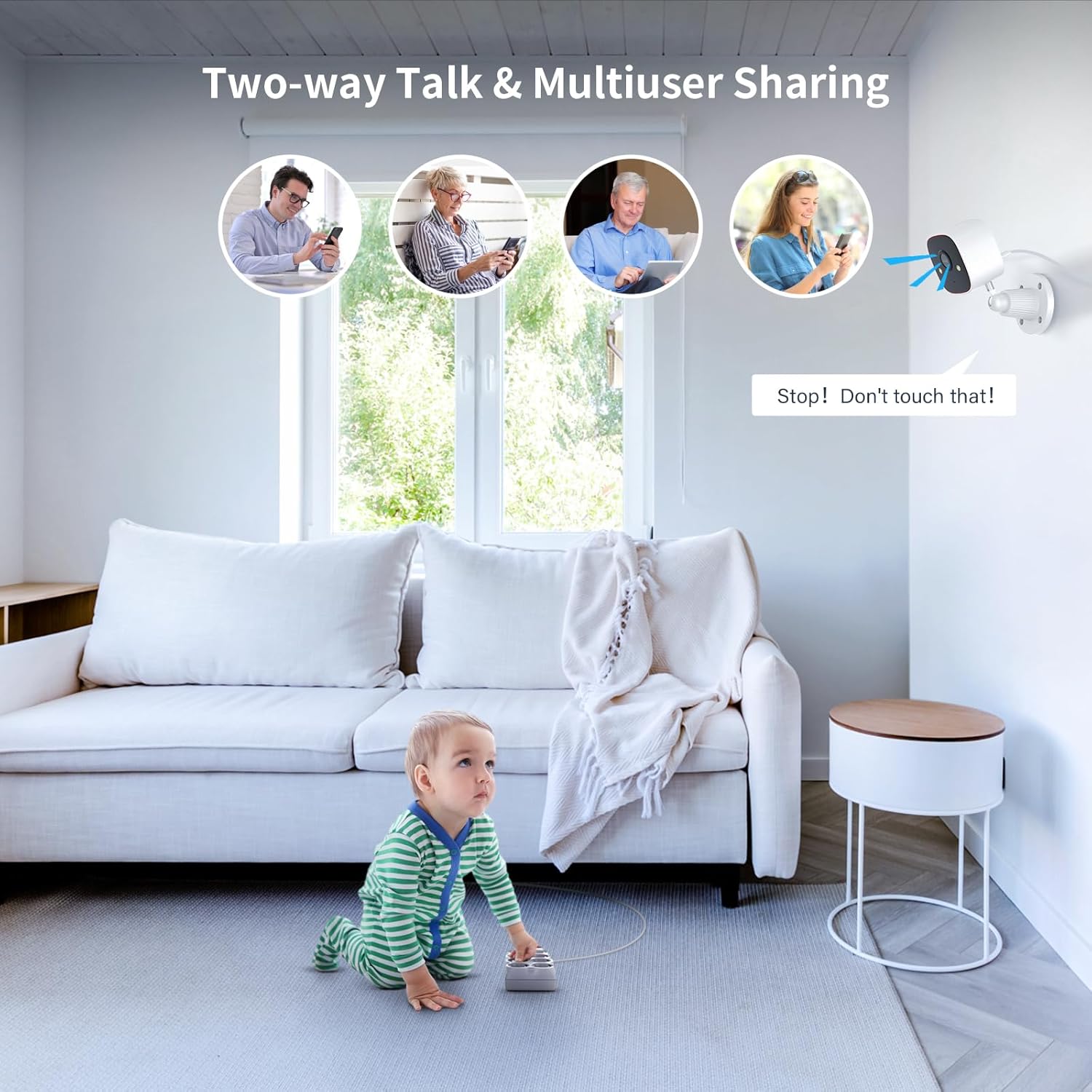 - ăTWO-WAY AUDIO & REAL TIME ALERTăThis cameras for home security indoor built-in mic and speakers let you connect with family, baby, and pets two-way speak via the app, compatible with Alexa & PC & Mobile app to view the live video remotely and real-time alerts will be sent to your phone in case of suspicious activities to help you take timely action, siren, flashing white light or 4-way talk that both allow you drive away thieves and unwanted visitors.