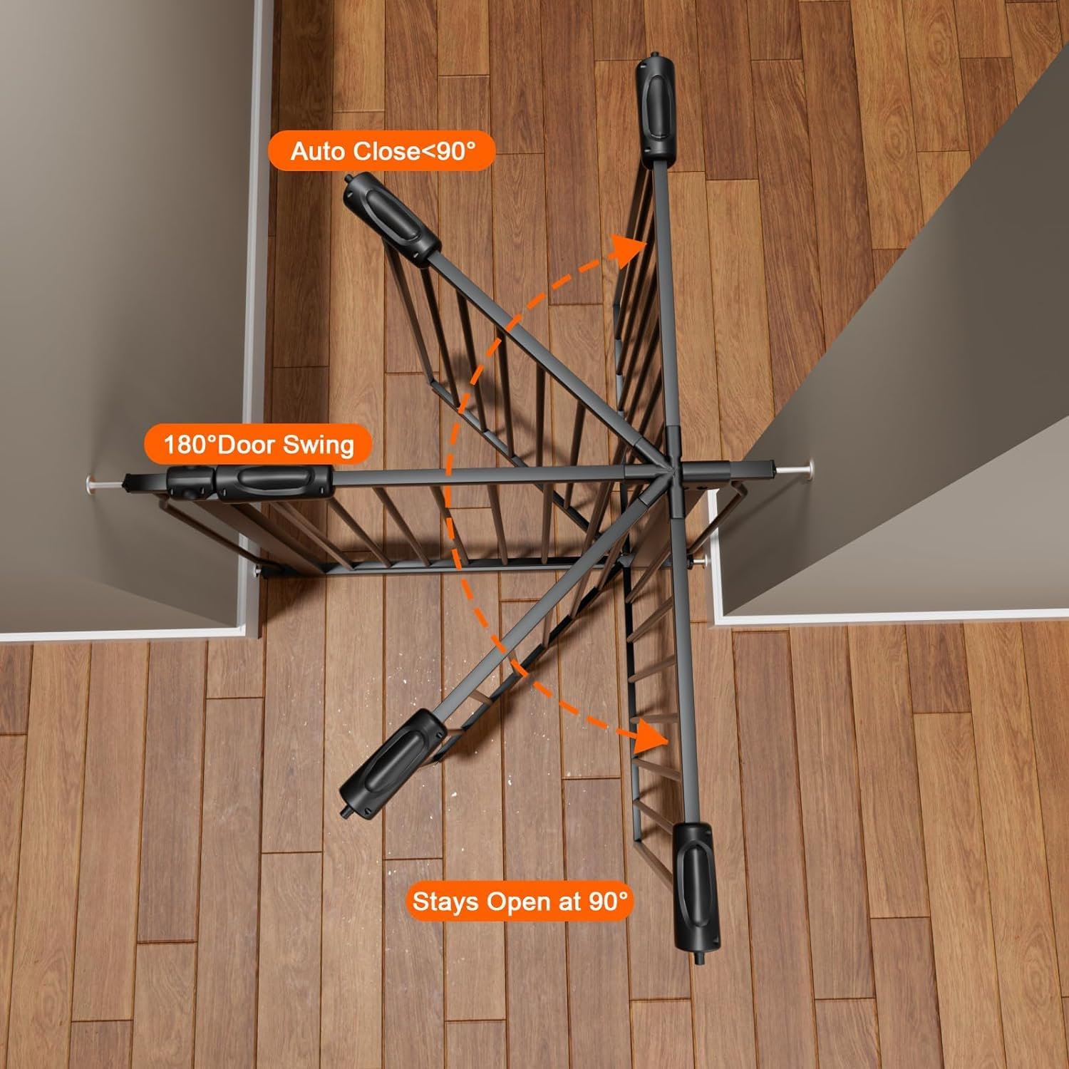- 【Durable and Safety Baby Gate】Our extra wide baby gate for stairs can effectively restrict your baby or pets from entering specific areas, ensuring their safety which provides you and your family with safety and reassurance.