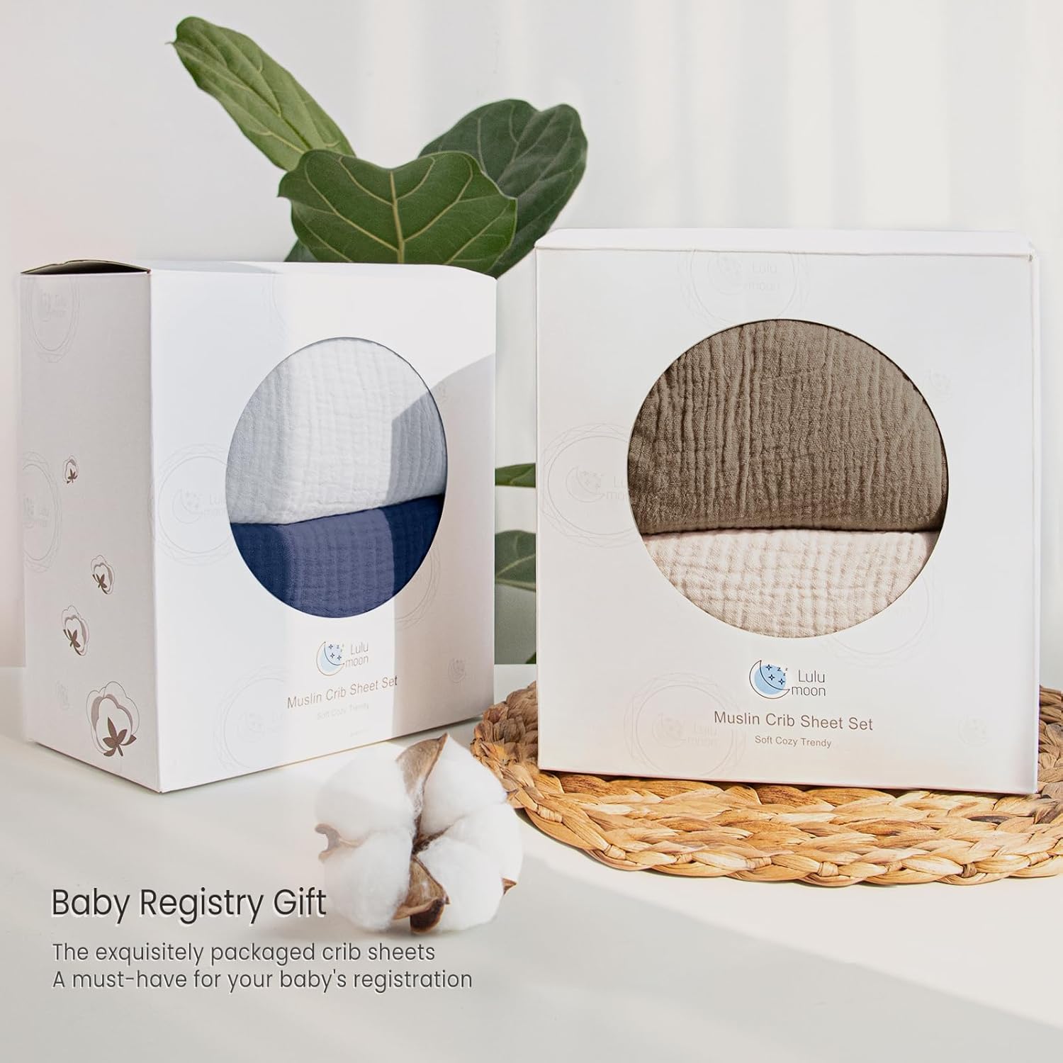 lulumoon Baby Muslin Crib Sheets - Toddler Cotton Fitted Crib Sheets Neutral for Boys and Girls 2Pack