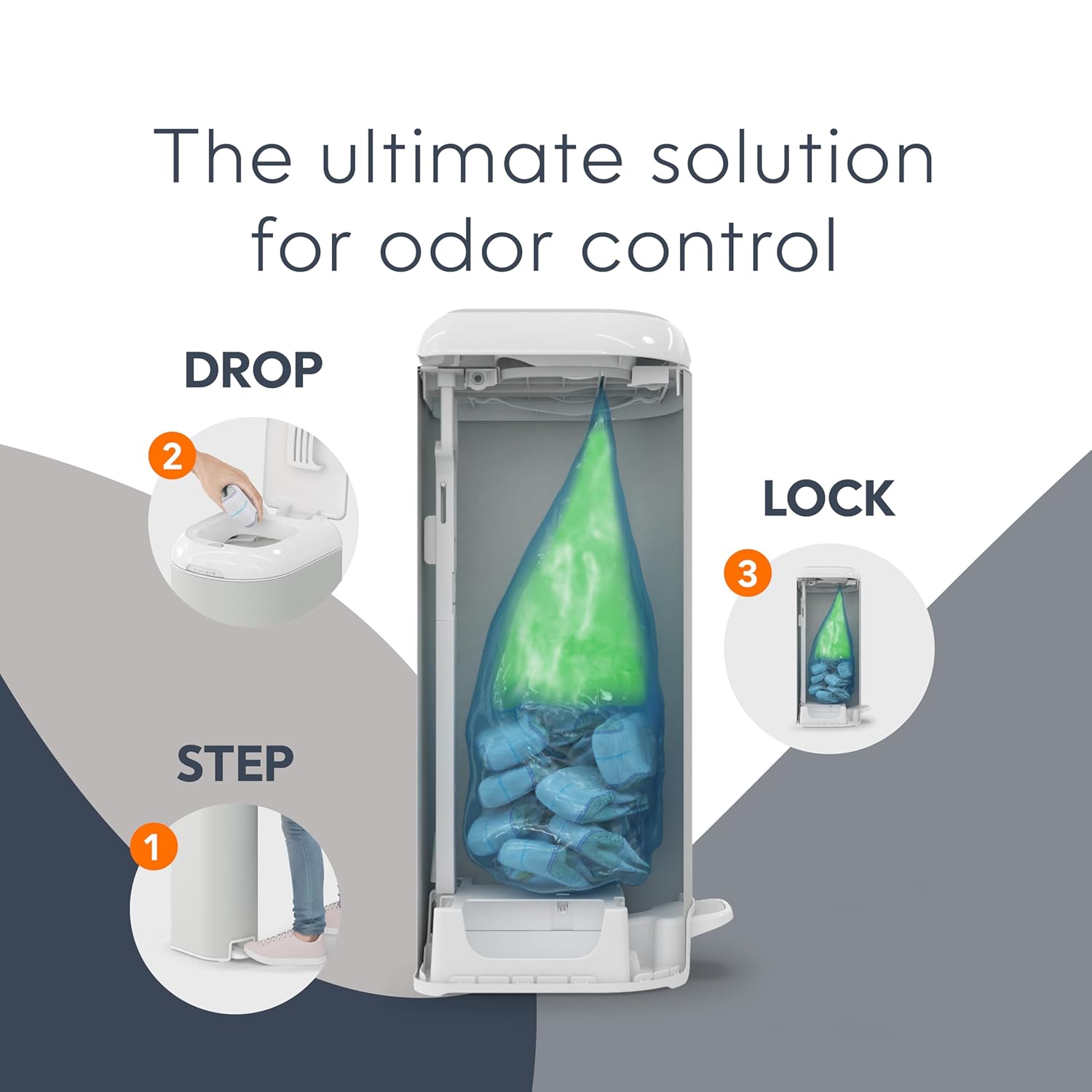 - OPTIMAL CONVENIENCE: Hands-free operation thanks to foot pedal; wide disposal opening and soft-closing lid creating less noise in the nursery while baby is sleeping
