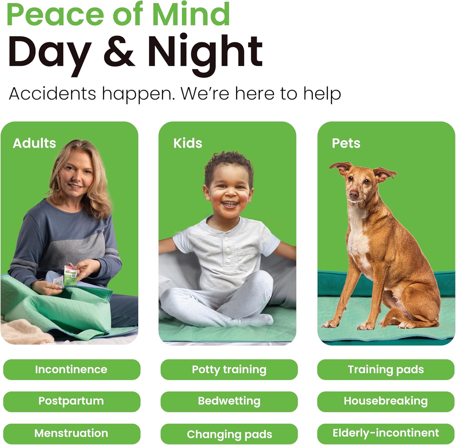 IMPROVIA® Washable Underpads, 34" x 52" (Pack of 4) - Heavy Absorbency Reusable Incontinence Pads for Kids, Adults, Elderly, and Pets - Waterproof Protective Pad for Bed, Couch, Sofa, Furniture, Floor
