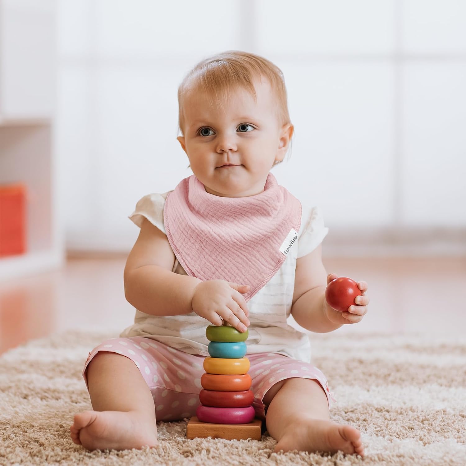 - Super Absorbent Muslin Bandana Bibs - Egmao baby muslin bandana drool bibs are made of soft organic cotton (Muslin) on the front and polyester on the back for added absorbency. Drool bibs for baby boy girl and this dual layer design helps to keep your baby clean and fresh all day long.No more drool rings on your baby's clothes!Most important the quality of fabric also as well as the bright colors with no chemical like smell and that have kept their shape and color after washing
