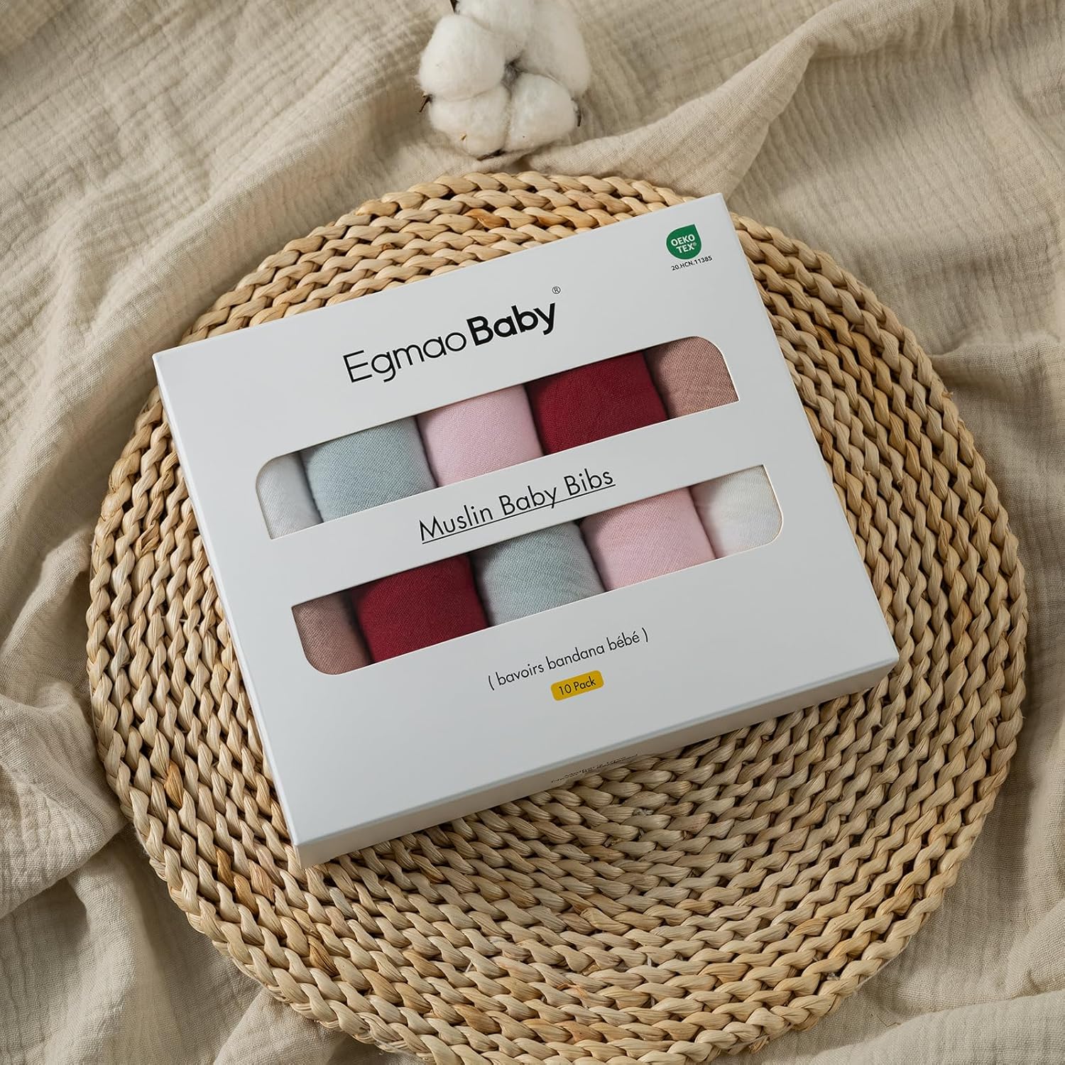- 10-Pack Cute Baby Muslin Bibs for Boy and Girl - Our 10 pack muslin baby boy bibs and girl bibs are exclusively designed by egmao baby to ensure that your baby never runs out of styling options. Our baby muslin bibs are unisex and easy to match, making them a fuss-free teething baby essential.
