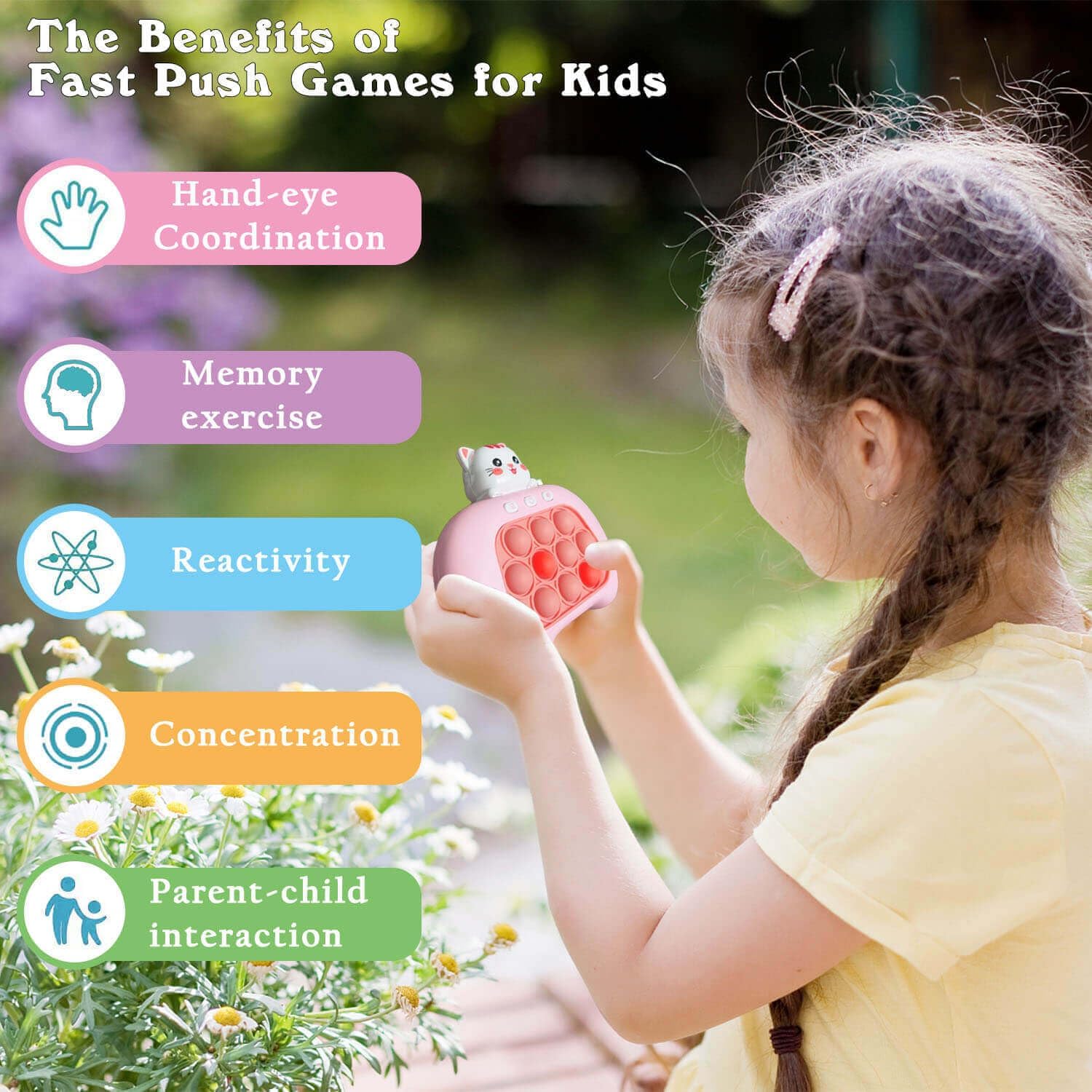 Fast Push Game Pop Fidget It Toys for Kids, Handheld Game Machine, Squeeze Poppet Sensory Electric Cute Light Up Quick Push Bubble Game, Fidgets Toy for Boys & Girls & Teens( Pink Cat)