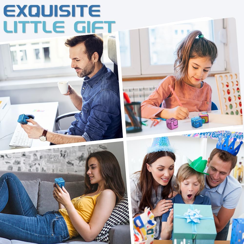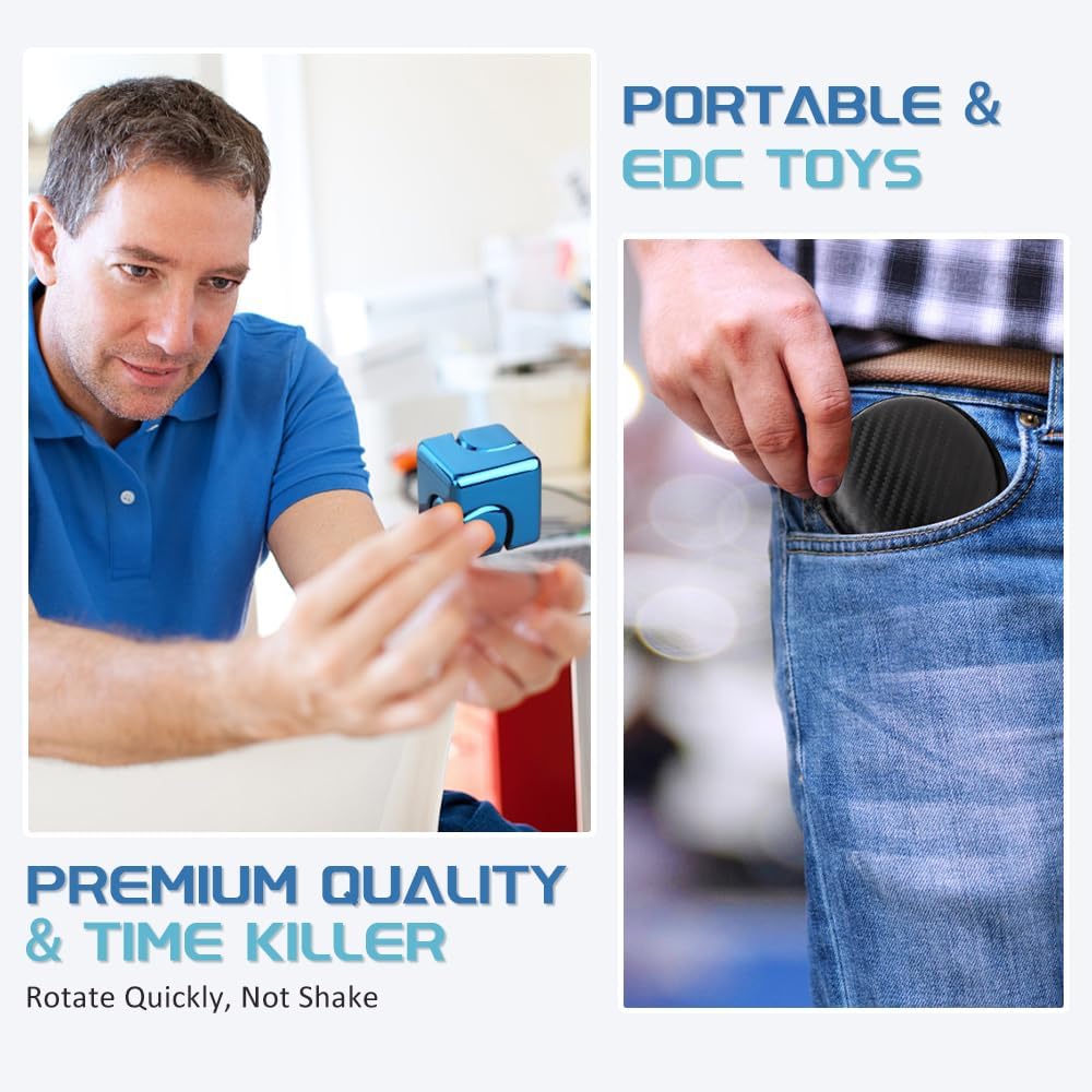Infinity Cube Fidget Spinner Toy for Kid Adult, Metal Fidget Block Sensory Focus Toy for Boy Girl 3-12, Fingears Stress Relief Easter Stuff EDC Desktop (Blue)