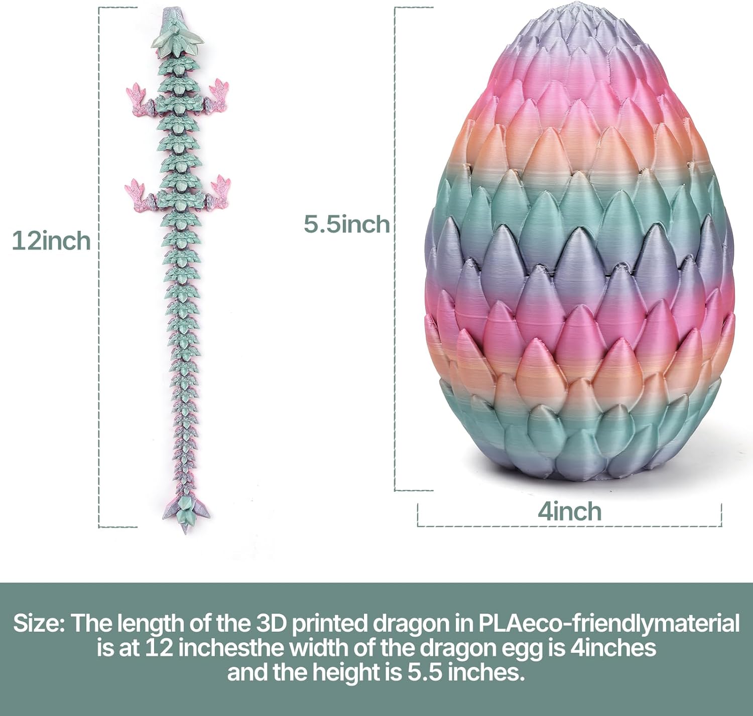 - Note:Multicolored dragons may vary in color pattern from photos due to the nature of the PLA filament when 3D printed. Includes a 12‘’articulated crystal dragon and a 5.5‘’dragon egg.