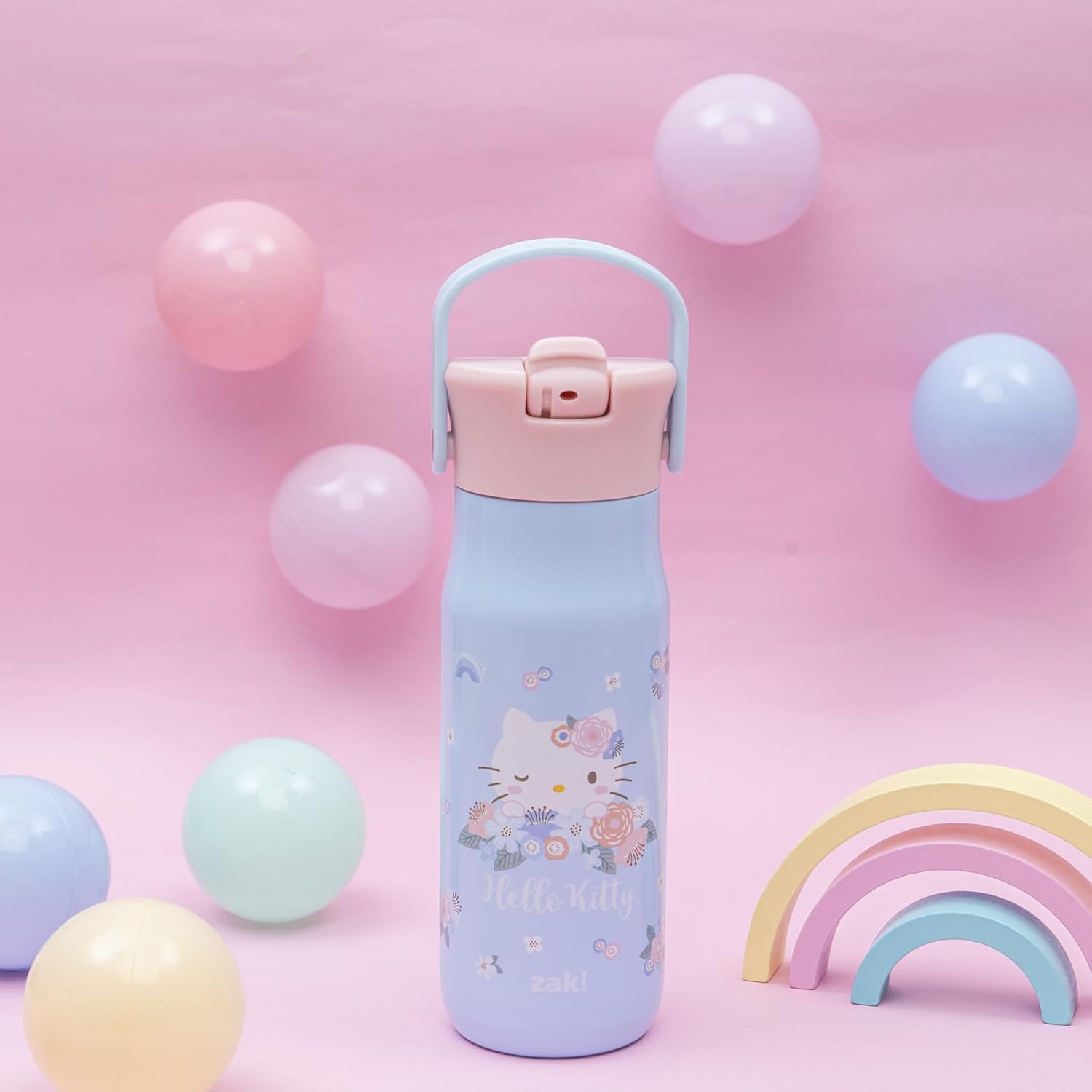 Zak Designs Harmony Hello Kitty 20oz Water Bottle for Travel or At Home, Recycled Stainless Steel is Leak-Proof When Closed and Vacuum Insulated with Straw Lid and Carry Handle