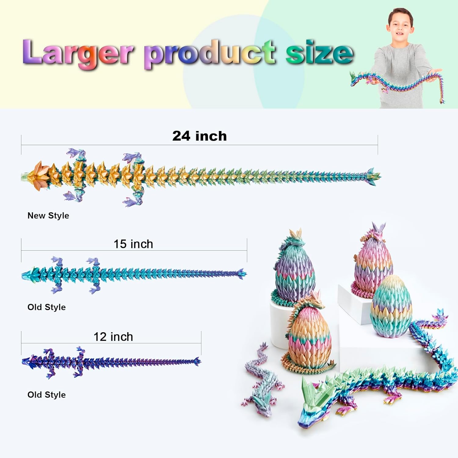 - [24'' large size, more fun] Compared to the 15'' printed dragon, our 30-inch 3D dragon is more suitable for playing in your hand. Its joints are flexible and its shape can be manipulated at will. You can put it Coiled on some brackets, it looks like a lifelike dragon appearing in front of you.