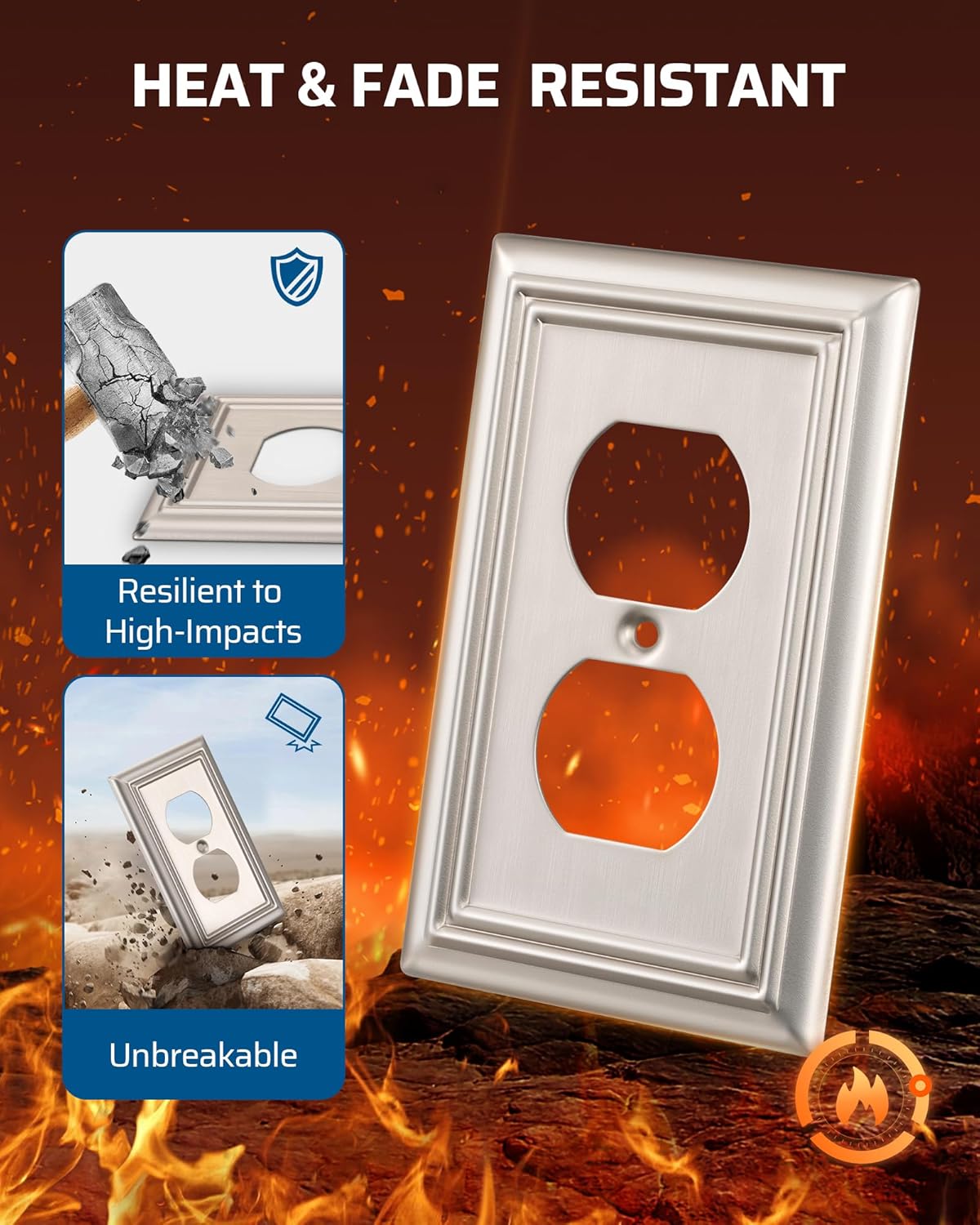 - 【Stylish Outlet Cover】Brushed nickel finish, gives your home a modern look, perfect addition to upgrade the look in your home, such as the kitchen, living room, bedroom