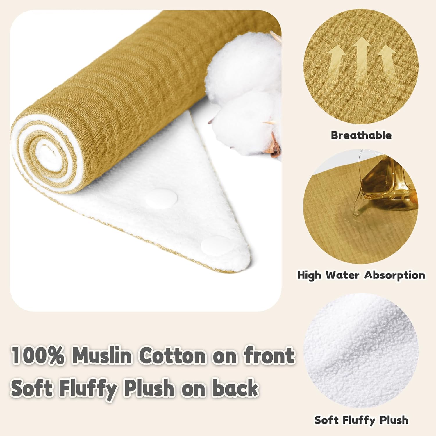 - Soft & Superior Absorbency: Our Susurration Muslin Baby Drool Bibs are crafted from muslin cotton on the front, they are backed with water-resistant soft plush to ensure maximum absorption with a skin-friendly, gentle touch for your baby's skin. The dual-layered design ensures both you and your baby remain free from wet clothes all day long.