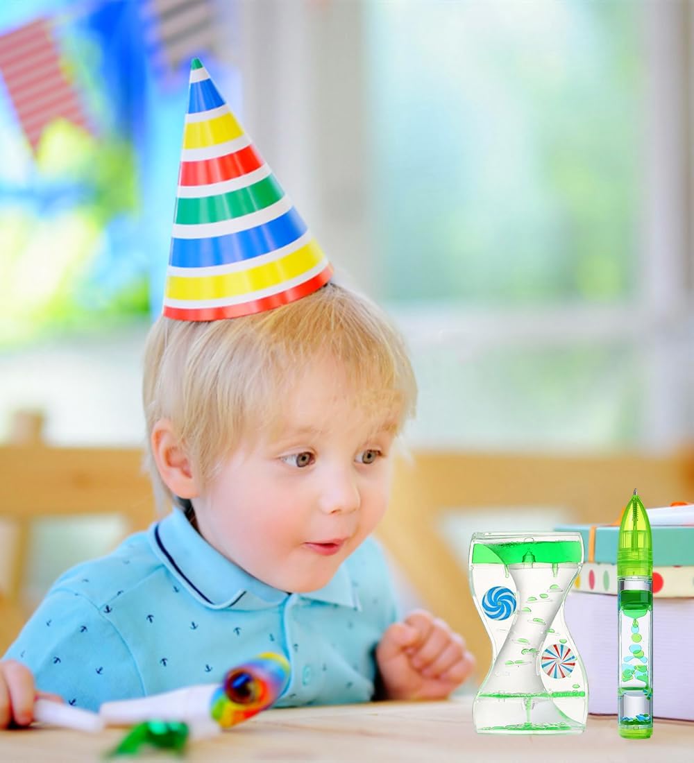 - Special and Fun Gifts : The liquid motion bubble timer is made of acrylic, which is often used as birthday or holiday gifts, prizes for boys and girls, desktop toys, stocking stuffers and office decorations. The fun liquid bubble timer toy is perfect for home, school and hospital use as a therapeutic aid that can help relieve tension and is an ideal sensory stimulation tool