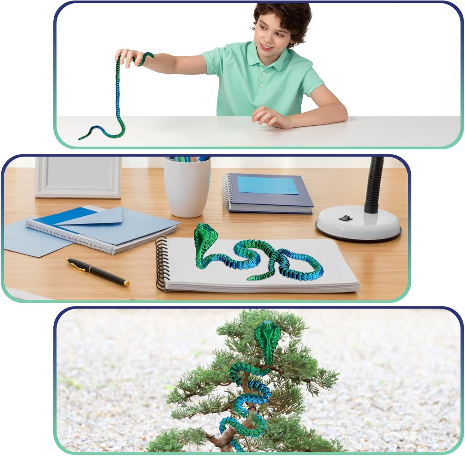 3D Printed Snake 3D Printed Animals 26in Printed Cobra Fidget Toys for Adults 3D Printed Articulated Cobra Flexiable Crystal Snake Toys for Home Office Decor